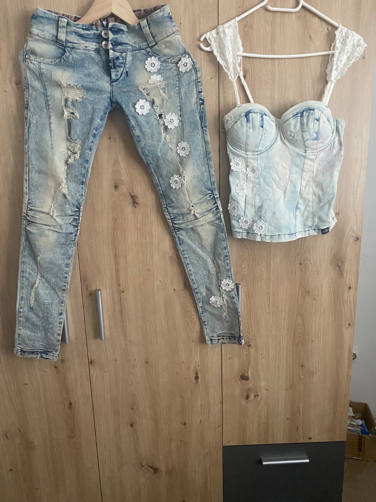 Veci vo veľmi dobrom stave, rifle tenšie letné cargo, výborný stav v páse na gumku, elastické, poddajné. tričko s odhalenými ramenami, krásne voľné, padavé, v páse patent, zakryje nedostatky. V pr...
