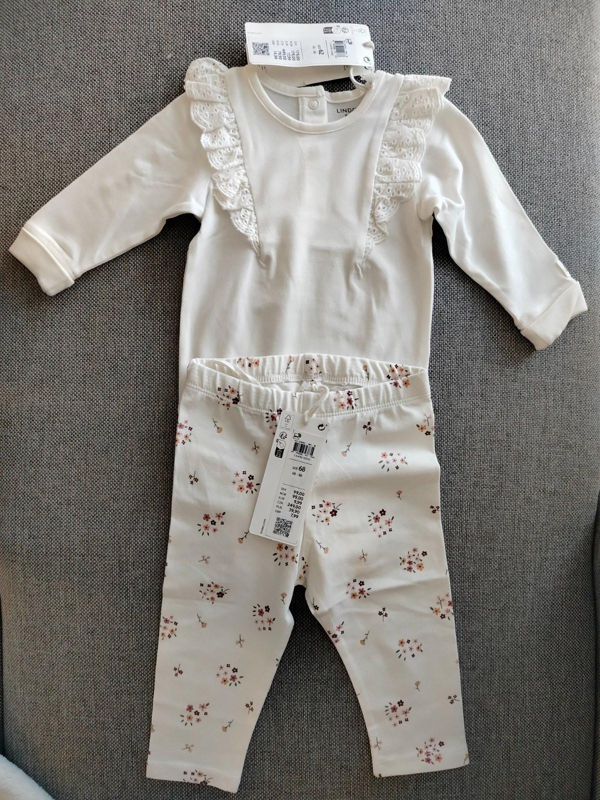 Krásne exkluzívne body 62 ( stáli 18€) a legínky č. 68 s drobnými kvietkami. Veľkostne 62-68 pasujú k sebe,body ponosí dlhšie, sú rastúce- podľa dieťatka samozrejme. Predávam pod cenu ako som kúpila.