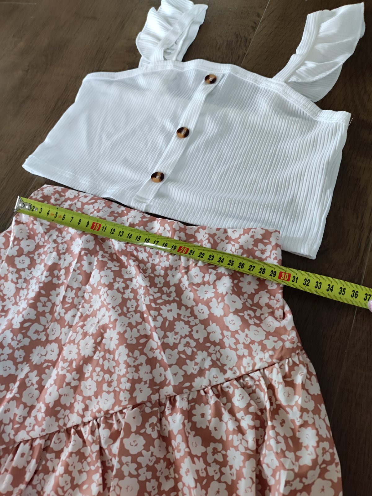 Ponúkam ľahučký letný komplet,žial mojej malé veľkosť 146-152..... sukňa má vzadu gumu... krásny.
