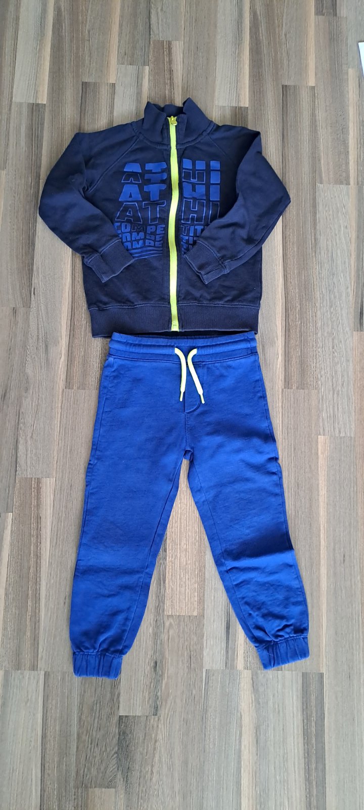 Ponúkam na predaj teplákovú súpravu/komplet (mikina bez kapucne a tepláky s nápisom), značka OVS, pre chlapcov, rozmer 104 cm (3-4 roky). Farba modrá a tmavomodrá, málo nosená (ako nová, bola ako náhradné oblečenie v škôlke). Kvalitný materiál bez žmolkov. Cena 7€/set.