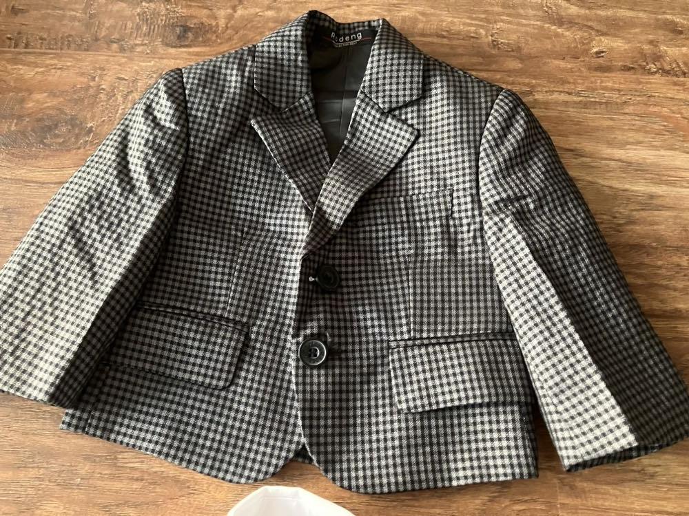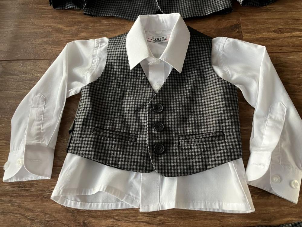 Predám nádherný chlapčenský oblek Rodeng pre cca ročného chlapčeka, veľkosť cca č. 80, šedo-čierny vo veľmi dobrom stave.