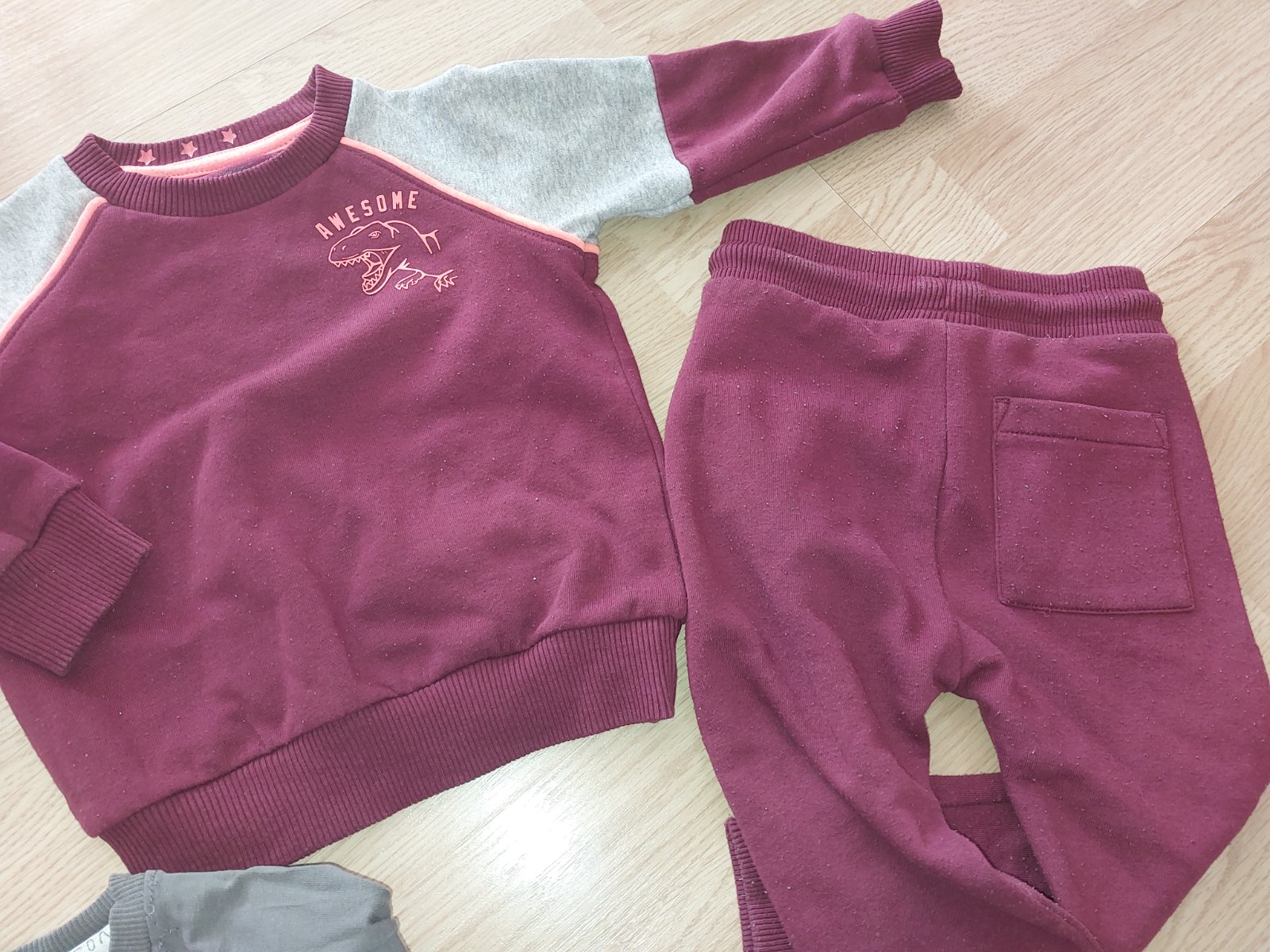 Teplákoch súprava v peknom nosenom stave bez dier a flakov ,len pri praní vznikol prací chlpok,odžmolkovač to vyrieší