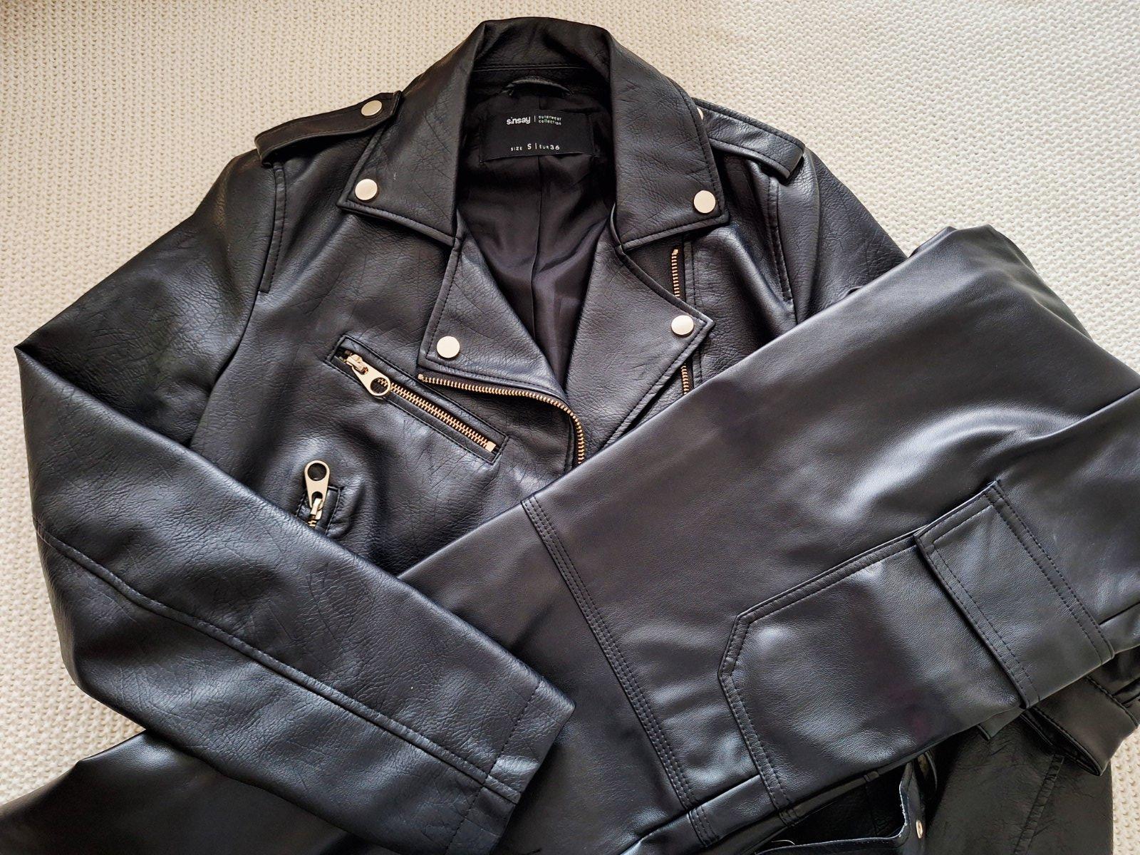 Koženná bunda veľ. 36 + nohavice veľ. 32 v super stave, Sinsay, takmer nenosené, predaj spolu, cena spolu