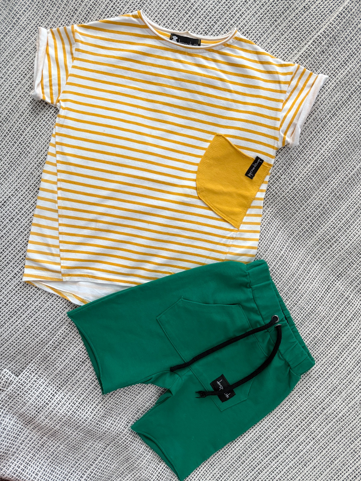 Nové kraťasy veľkosť 122. Tričko pár krát oblečené napriek tomu malé fliačky…vid foto