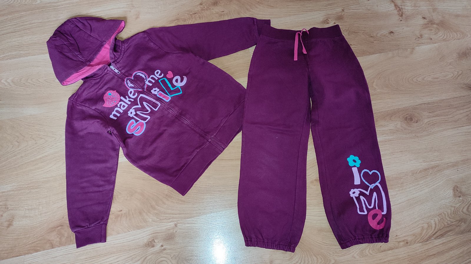 Ponúkam na predaj peknú bavlnenú tepláková súpravu. Nosena máličko, bez akýchkoľvek poškodení, nevyblednuta, bez zmolkov. Veľkosť uvedená 128 ale určite aj ako väčšia 122ka. Nie je moc hrubá, vhodná aj na TSV. Cena 8 eur