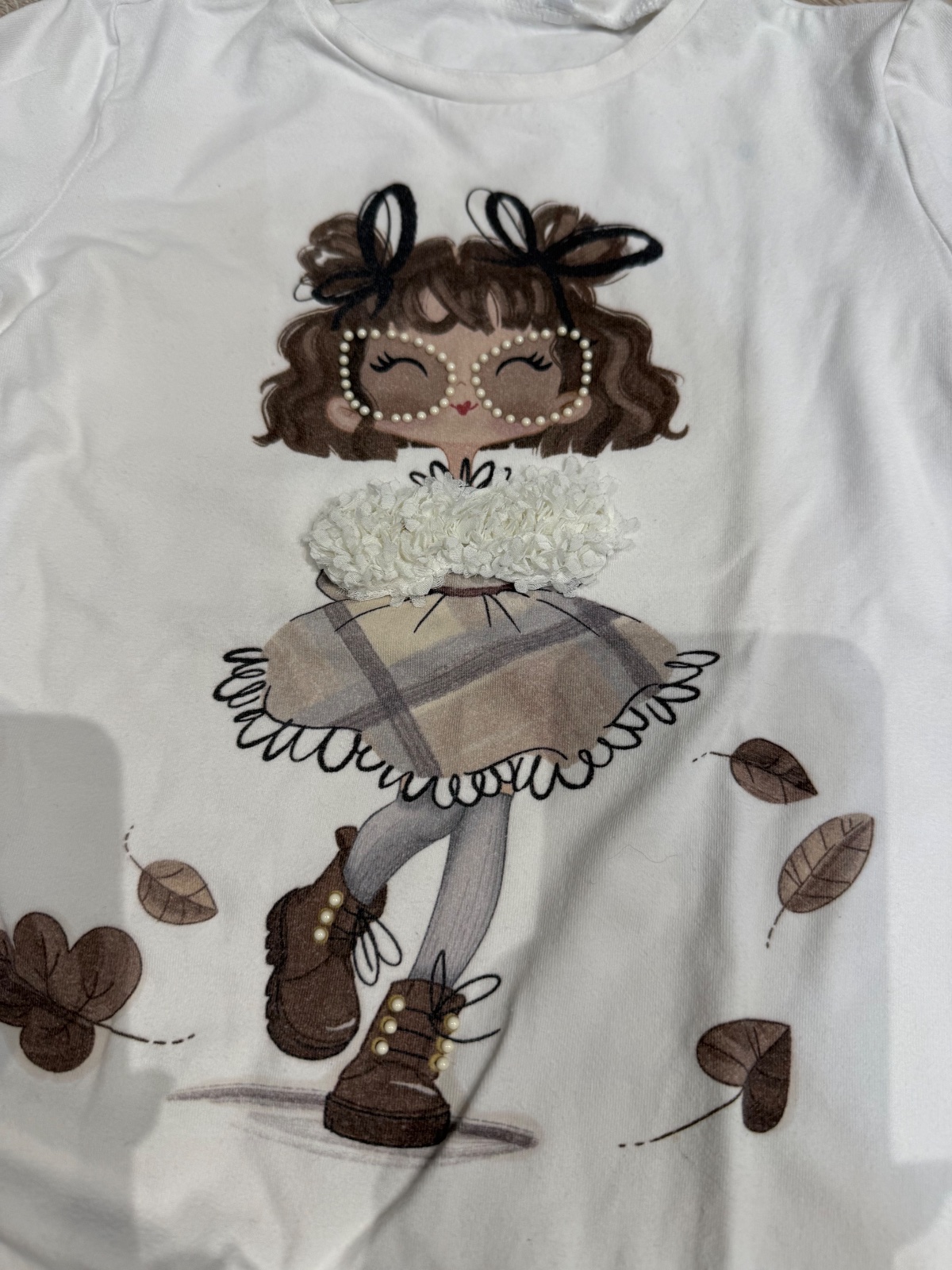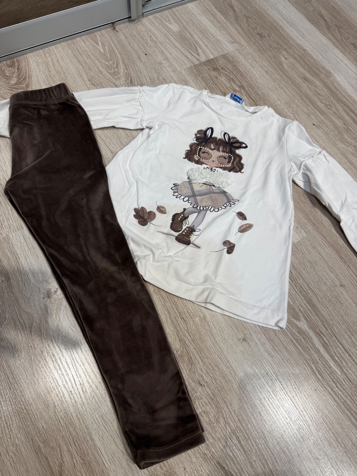 Veľmi dobrý stav. Bez fľakov, žmolkov či poškodení. Skladá sa z trička s obrázkom yorkšírika a legínkov. Pekne farebne a kontrastne doladené, na tričku krásne ozdoby, výrez na chrbátiku - vyzerá to...