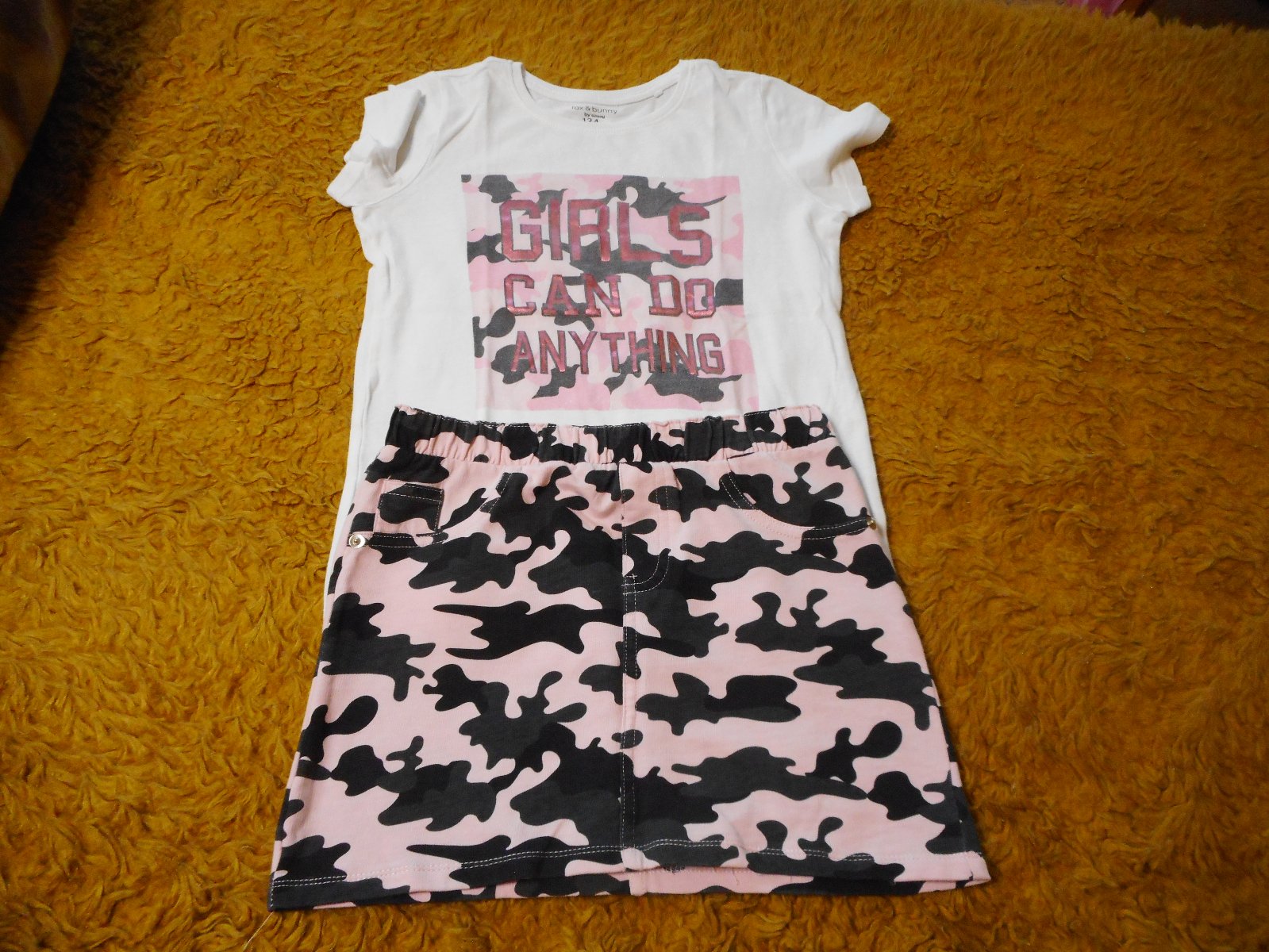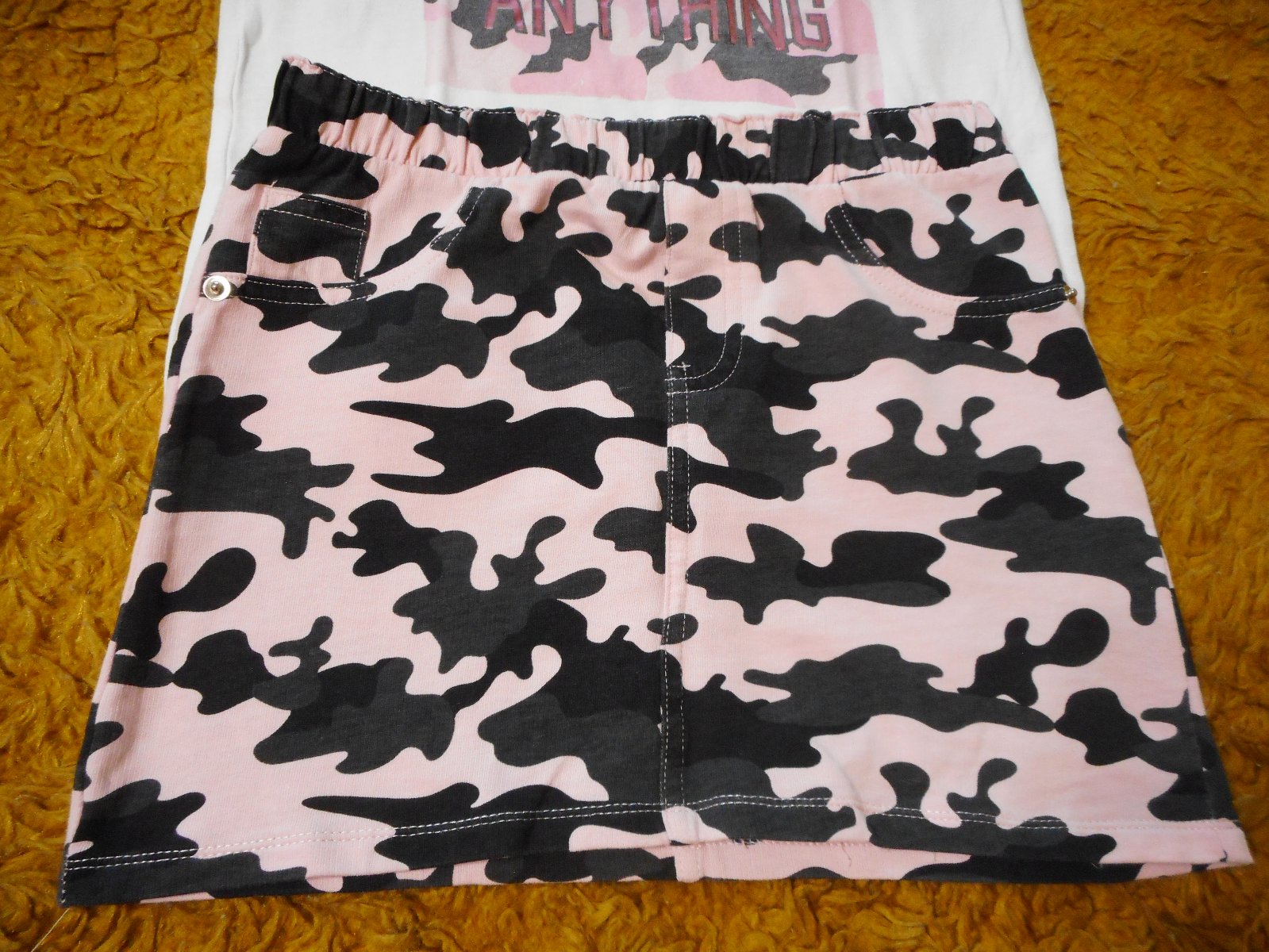 predám používaný, nepoškodený dievčenský komplet tričko s krátkym rukávom a sukňu zn. Sinsay veľkosť 134cm