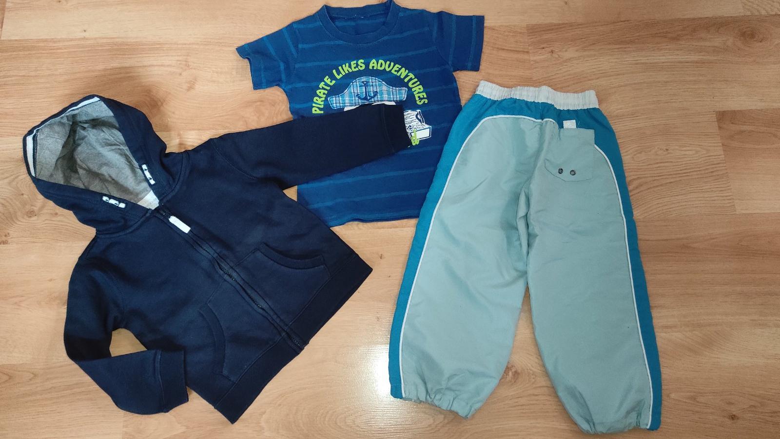 Ponúkam na predaj krásne veci pre chlapca. Výborne športové nohavice, Max. pohodlné, príjemný materiál, zvnútra čelo podsite. Vhodné na turistiku, prechádzky ale aj bežné nosenie. Bez akýchkoľvek poškodení, nevyblednute, super prepracované. Bavlnené tričko, nosené pár krát bez poškodení, nevyblednute a bavlnená mikina, krásna sýto modrá, pár krát použitá, nevyblednuta, na foto zblízka šedivá to je ale len od blesku. Pekná na bežné nosenie kdekoľvek, stredne hrubá. Cena 10 eur.