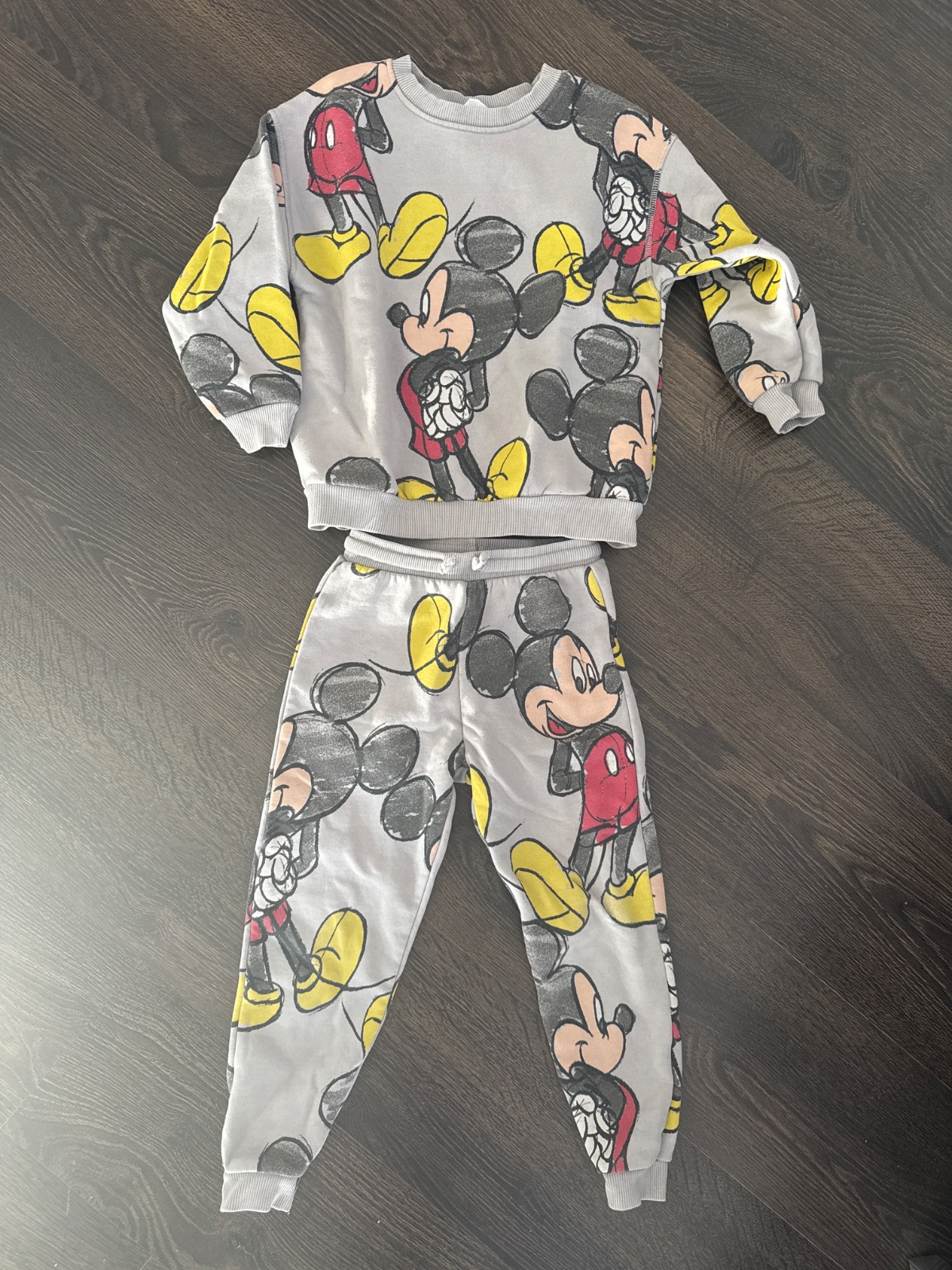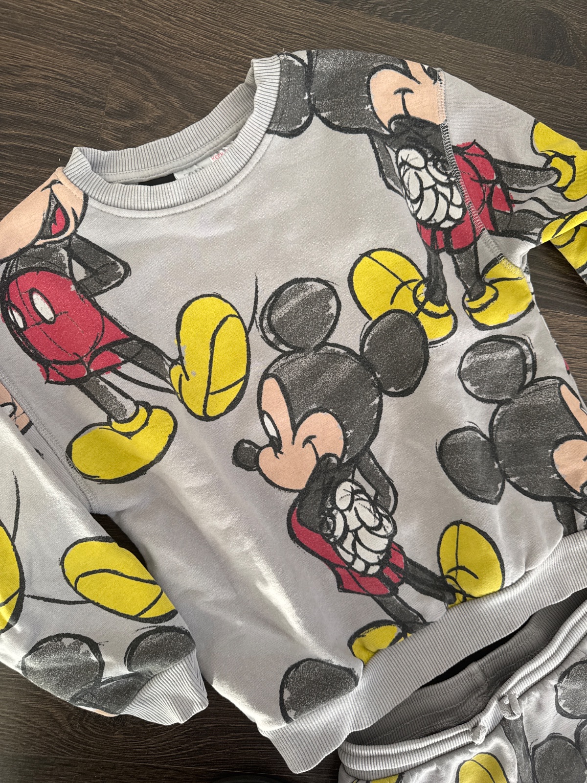 Mickey súprava zara v peknom nosenom stave. Na jednom kolene stenšená látka ale nieje to vidieť kým nehľadáte viď foto