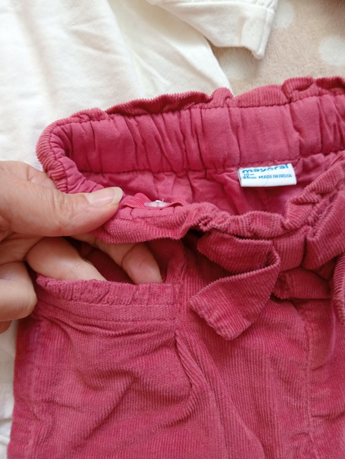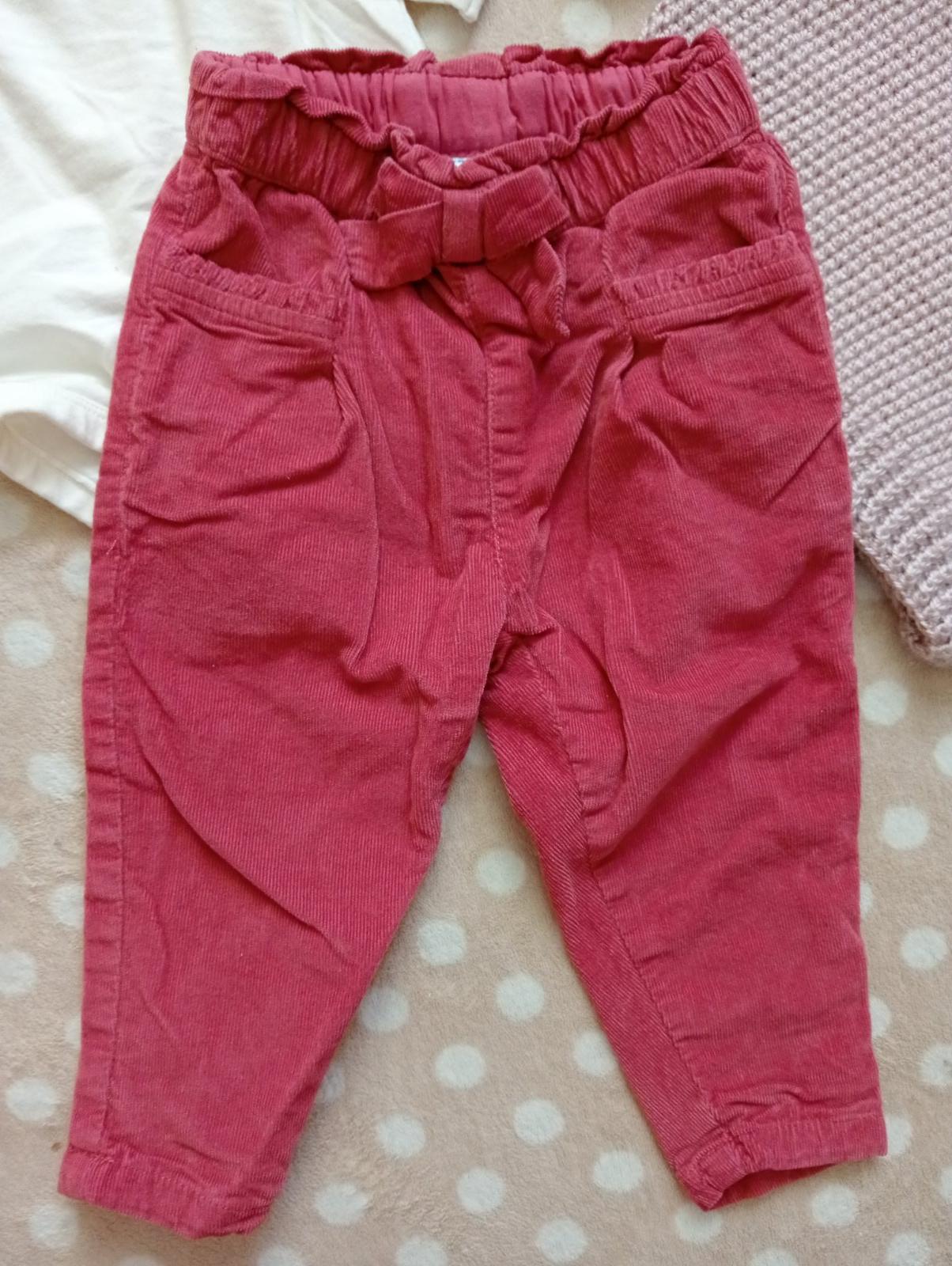 Predám kompletík na chladnejšie obdobie. Menčestrové nohavice Mayoral podšité, s vreckami a gumou v páse na reguláciu. Dĺžka 44 CM, šírka v páse 20 CM + guma. Body slonovinovej farby s ozdobným golierom Zn. Mayoral. Svetrík handmade staroružová farba. Top stav.