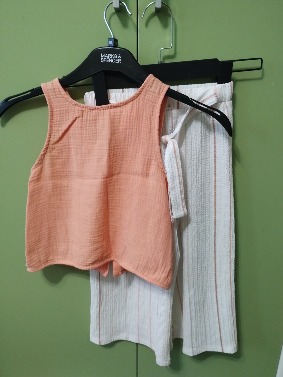Športová súprava pose 122 ale podľa mňa tak od 116 . 3/4 nohavice plus tricko bez rukávov. Nohavice pas 24-25 cm . Cena 7e plus poštovné
