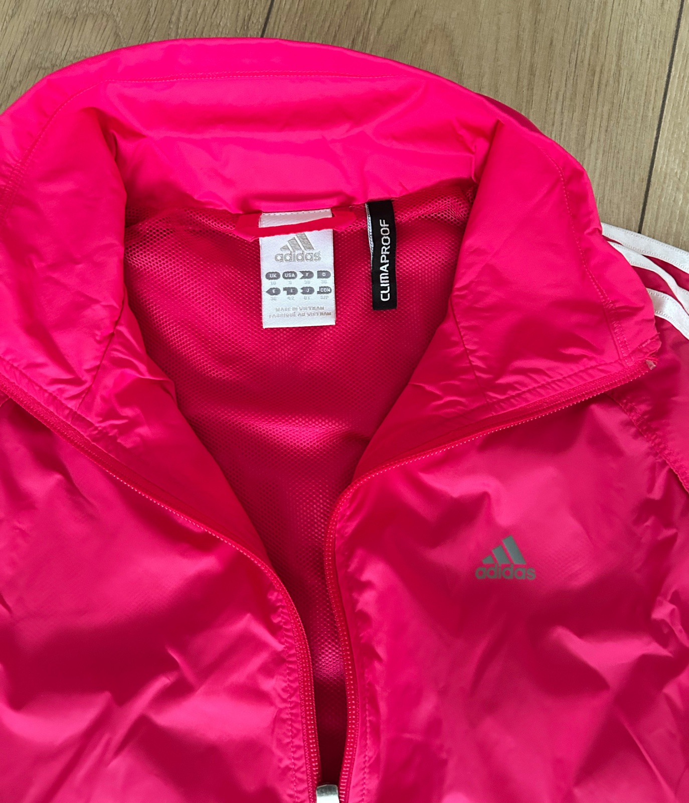 Športová súpeava Adidas,velk.S-M. Teplaky pás na gumu od 84-100cm,dá sa stiahnuť snúrkou,dľzka 100cm,od rozkroku 76cm.Bunda dlzka od krku 58cm,cez prsia 96cm.
