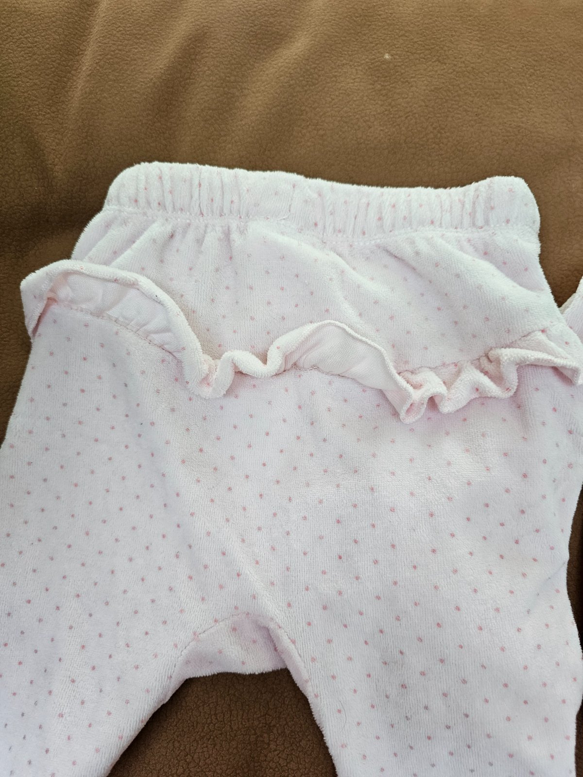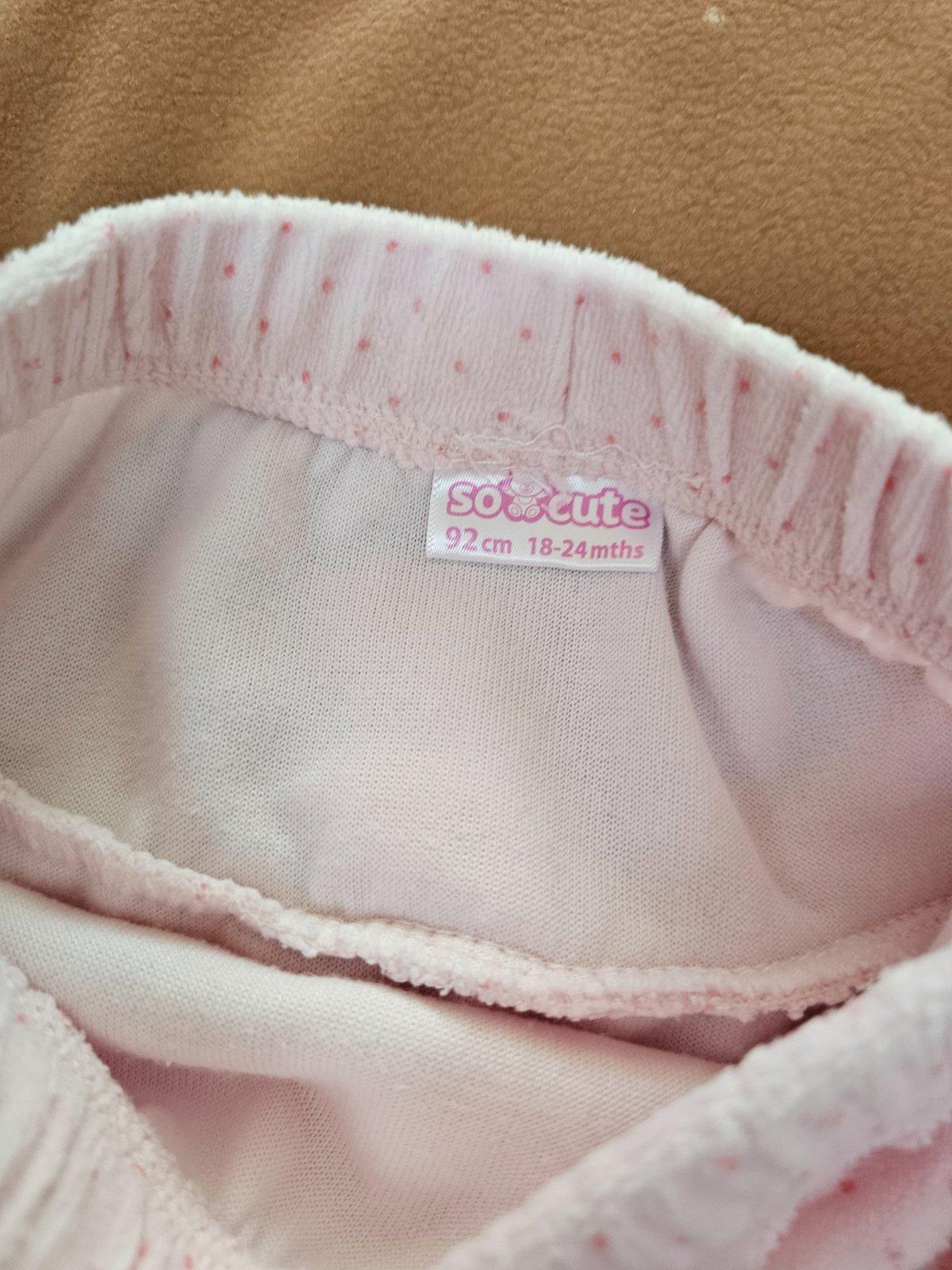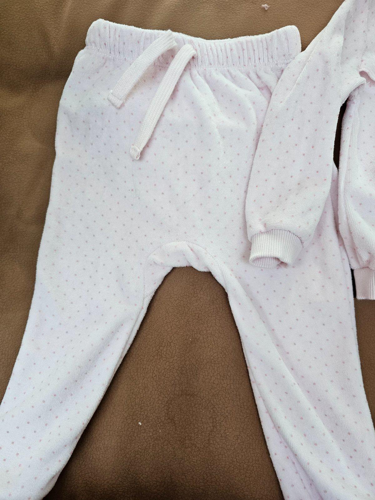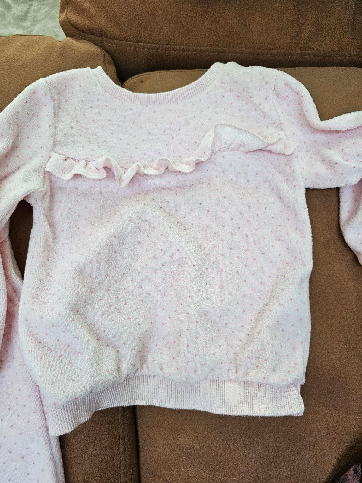 Krásna supravicka, mikinka aj tepláčiky 92, mikinka ma zapinanie na ramienku, aby bolo vacsi otvor na hlavicku a vprefu volanik. Teplsciky v pase guma snurka, na zadocku volanik.