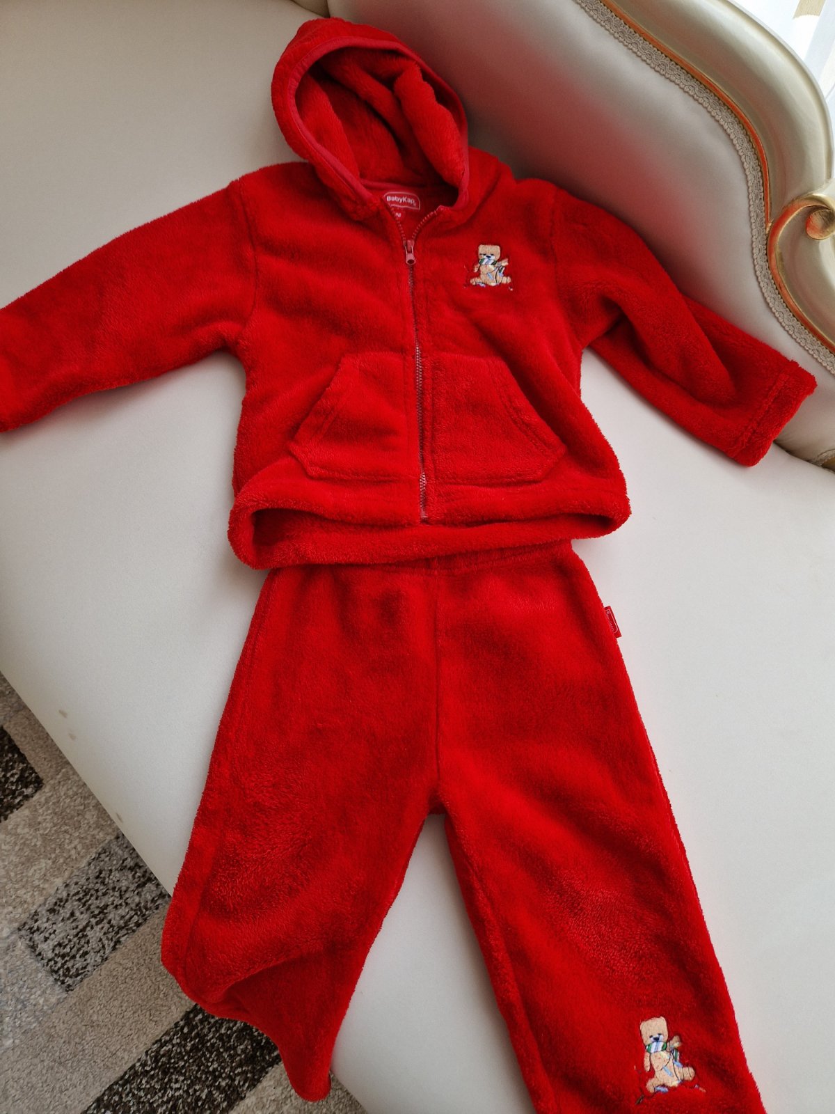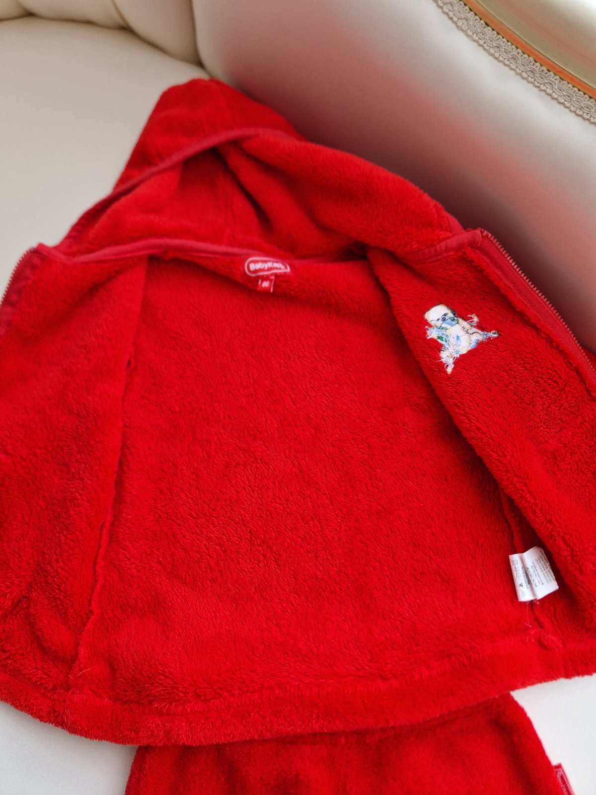 Mikina super stav, nohavice majú zvnútra dieru v rozkroku- zvonku nevidieť Mikina cez prsia 53cm, od pleca dolu 56cm, rukáv 59cm