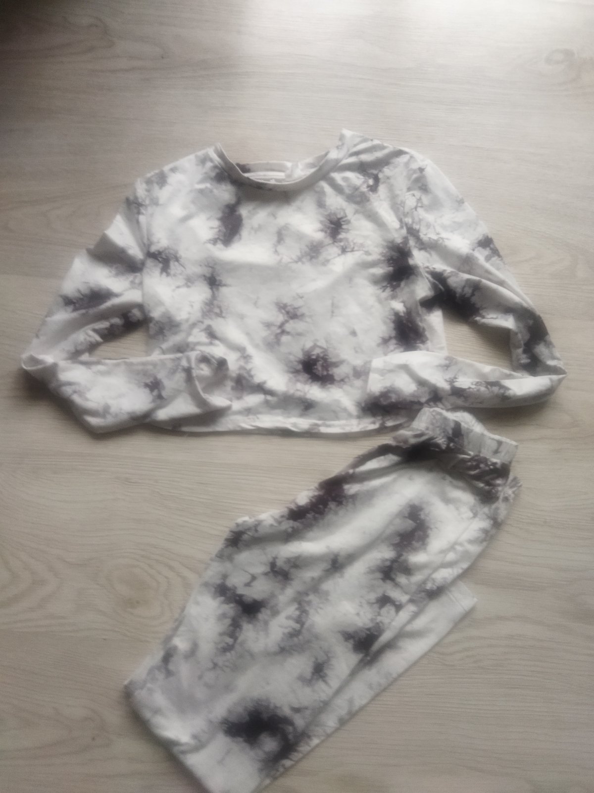 Predám nenosenu súpravu. Rozmery bundy Sirka 43 cm Dlzka 52 cm Rukav 51 cm Rukav od krku 57 cm Teplaky: dĺžka 86 cm Pas 33 cm v klude