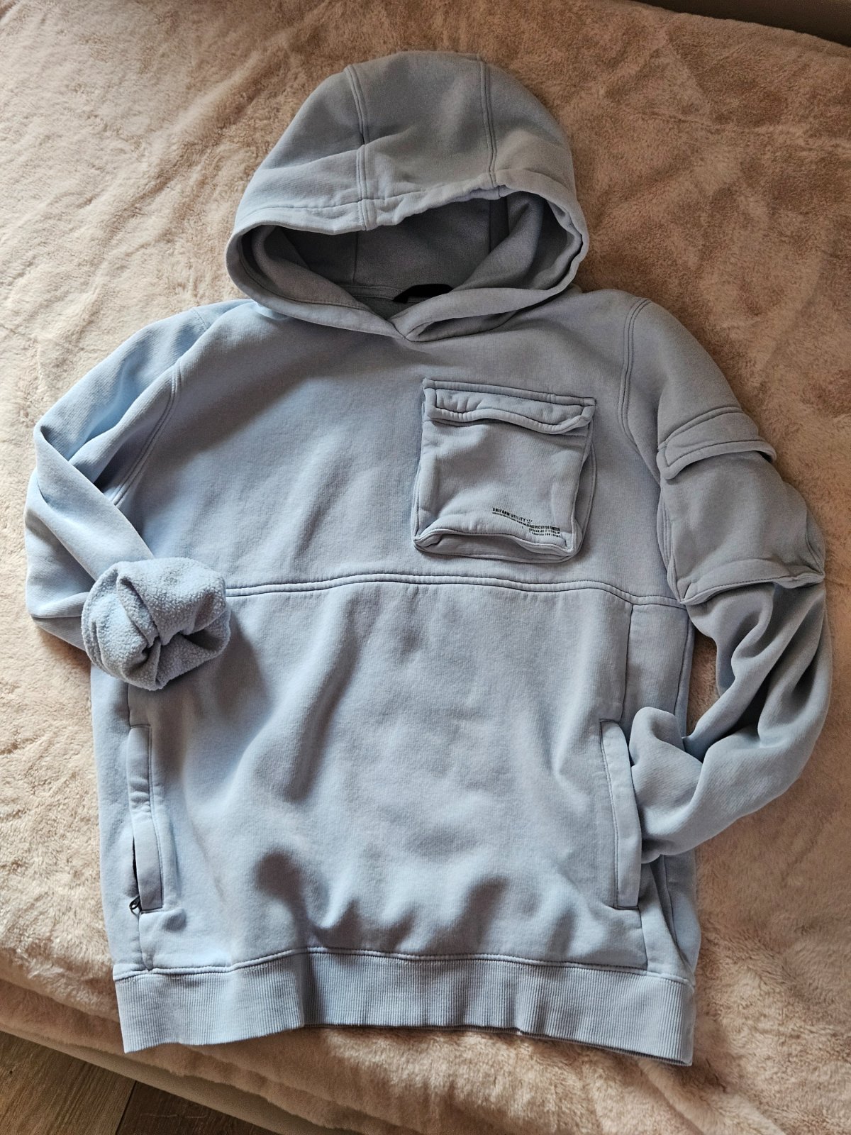 Farba je krajšia modrá ako na foto, dobrý nosený stav, veľkosť na štítku 170, ale sedí na 164. Miery sú uvedené na fotkách.