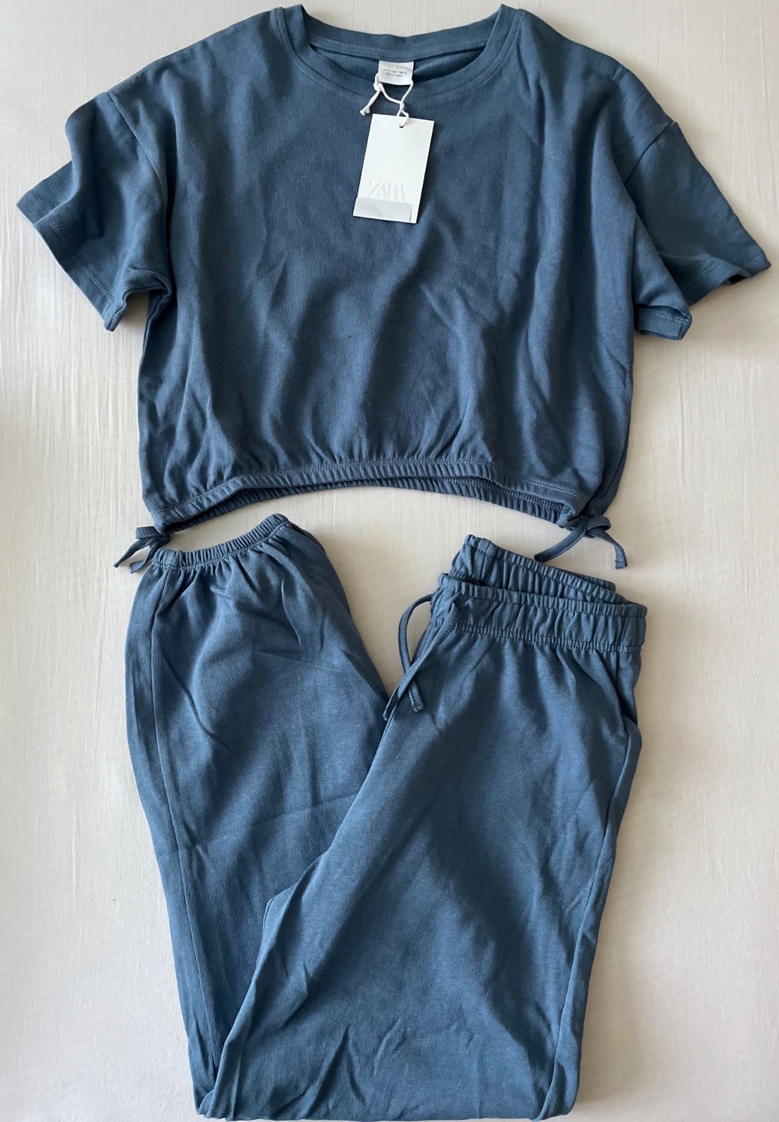100% bavlna...Dvojdielna súprava. Tričko s okrúhlym výstrihom a krátkymi rukávmi. Spodný lem je zakončený elastickou gumou a po stranách sú našité mašličky. Nohavice s elastickým pásom a šnúrkami vpredu. Spodný lem je zakončený elastickou gumou.