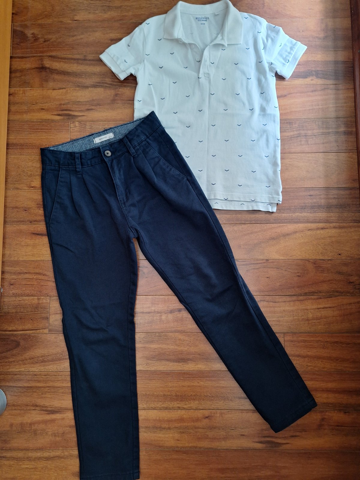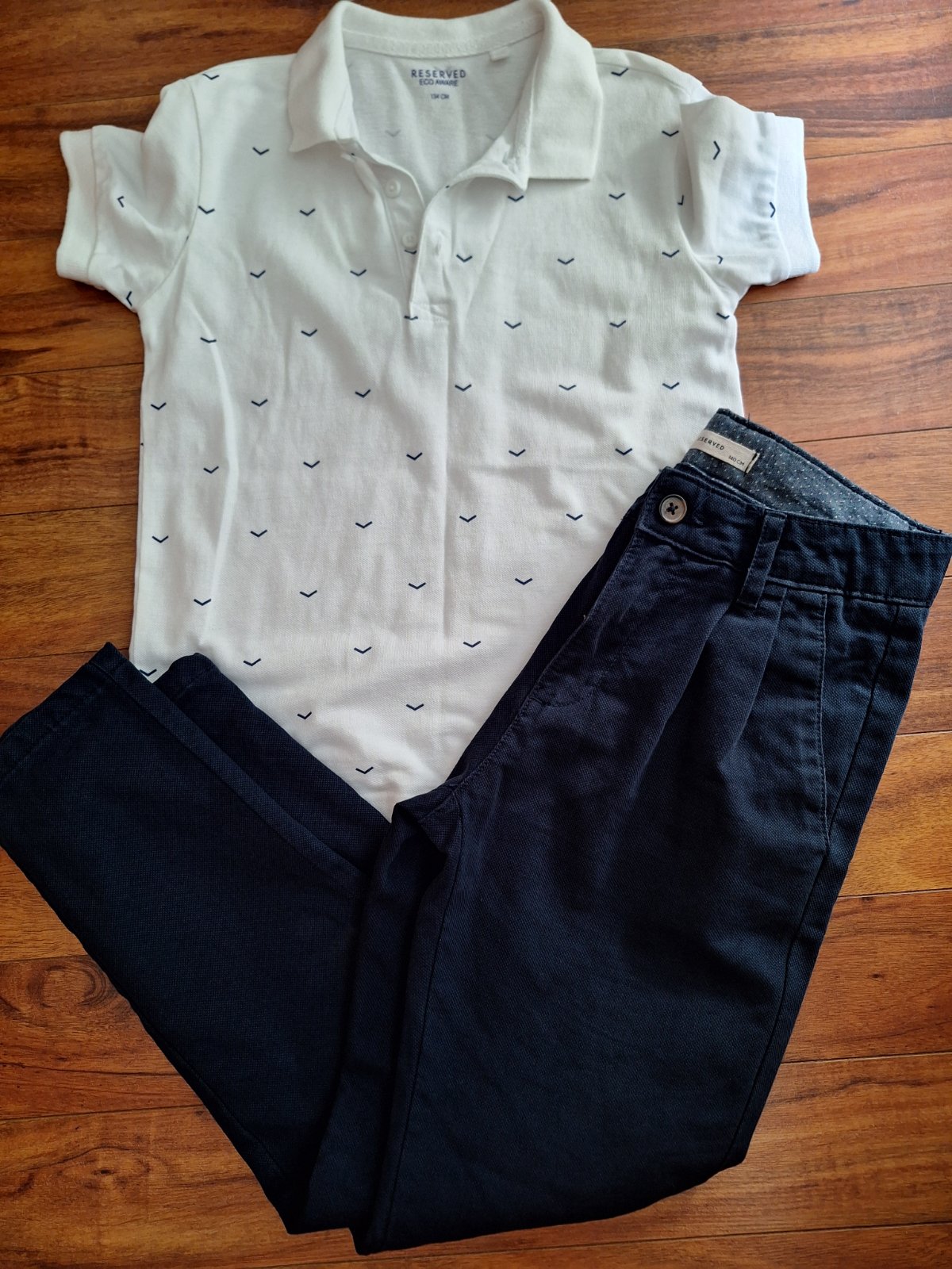 Set kupovaný v Reservede. Polokošeľa 134, nohavice 140. Oblečené len na oslave, výborný stav. Pridávam aj bielu košeľu na 10/11r.