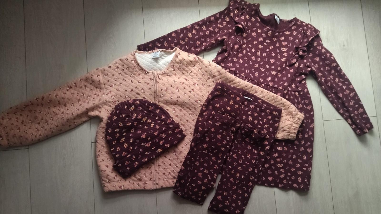 Šaty, legíny, bunda a čiapka. Málo nosené bez poškodenia, len bunda má sem tam žmolok.