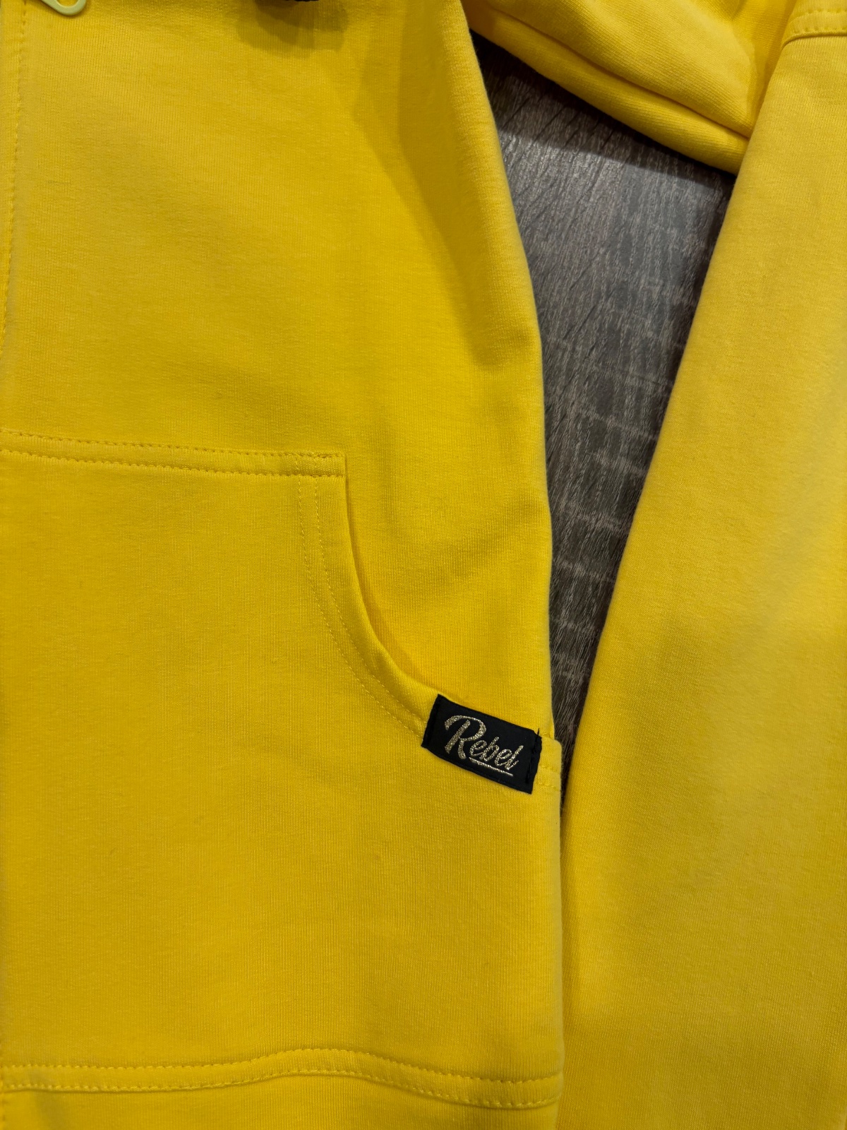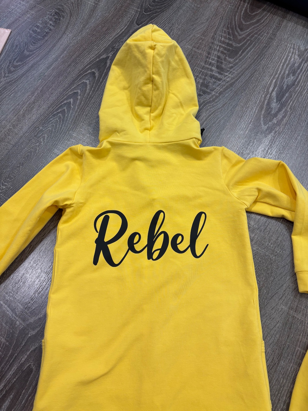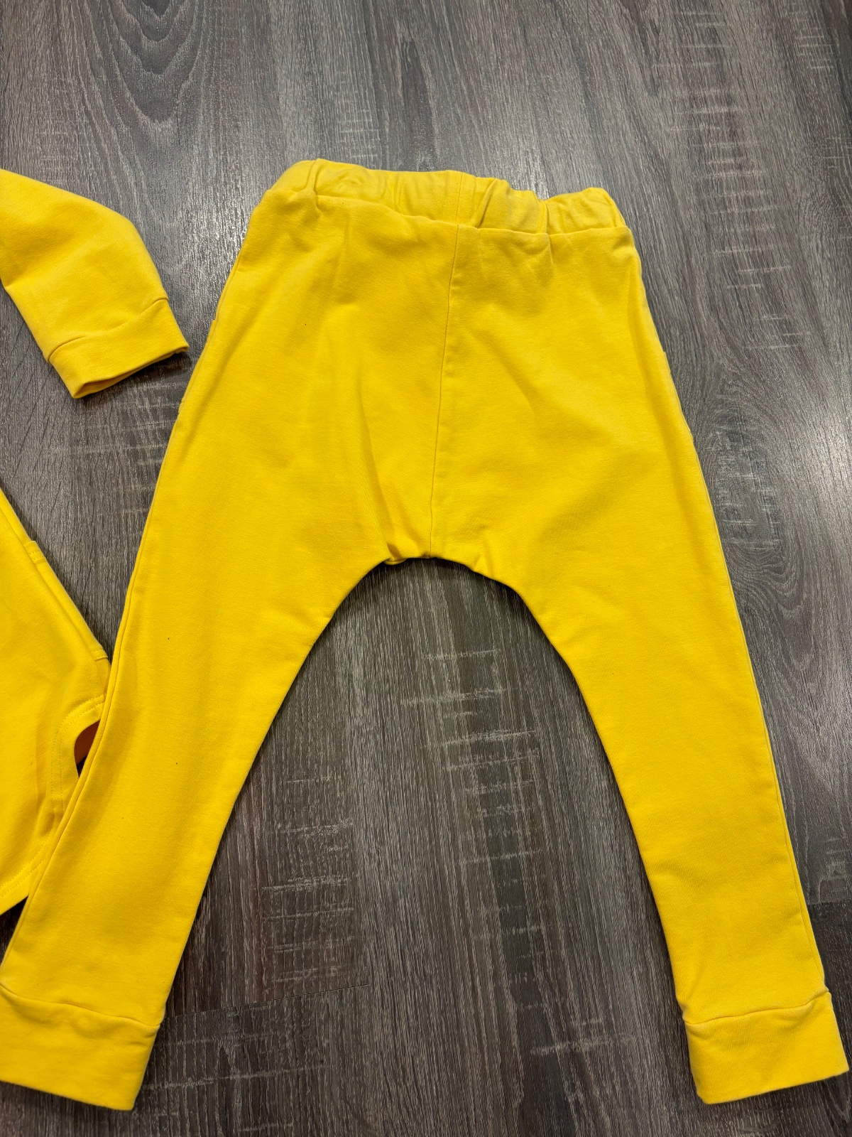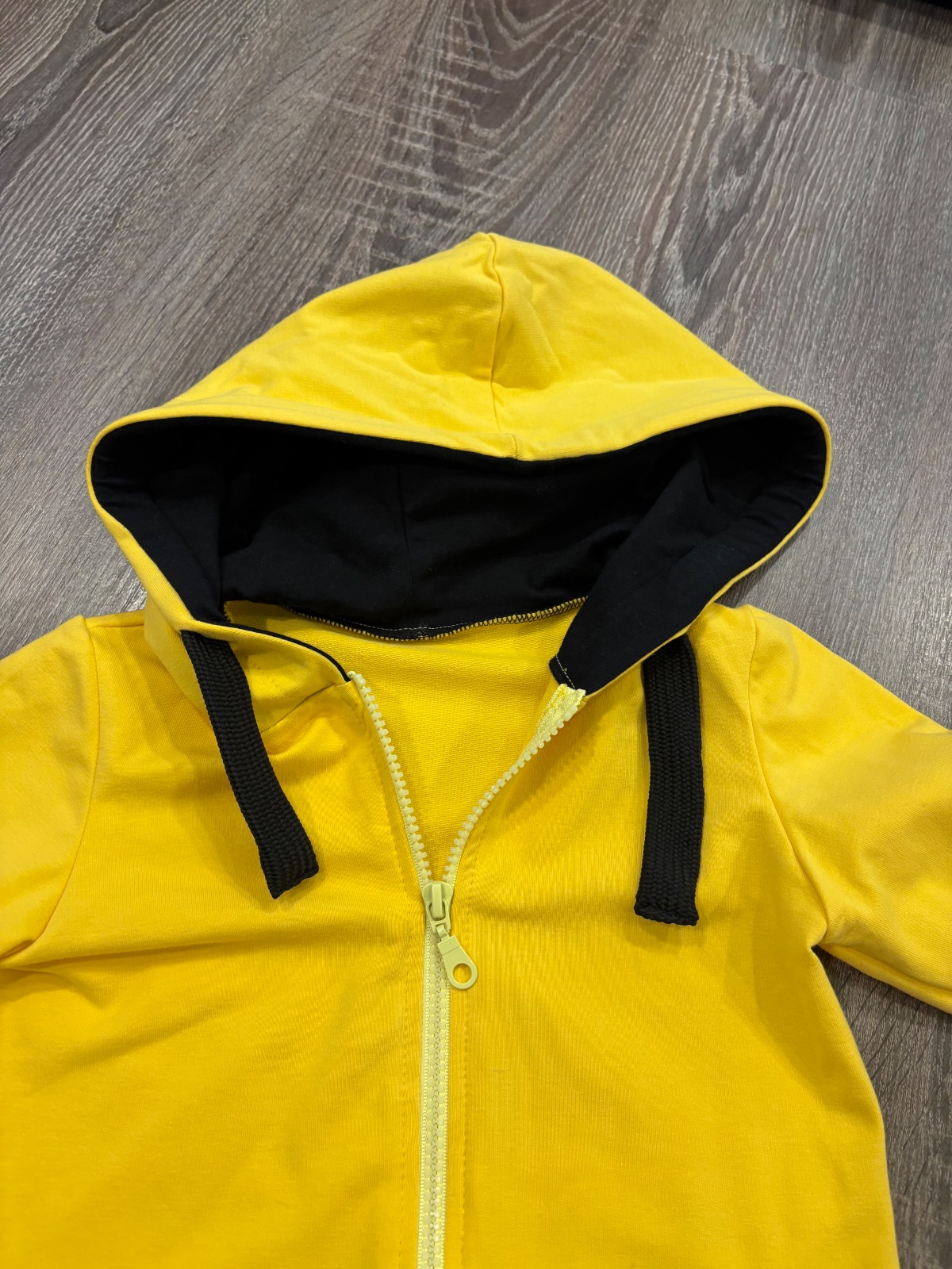 02.Rebel Kids štylova detska suprava,krasnej žlto-čiernej kombinacii vo velkosti 104-110.Dlzka mikiny prednej casti je 49cm,zadnej casti je 55cm,dlzka rukava od krku je 46cm a sirka v podpazusi je od 34x2cm do 39x2cm.Teplaky su dlhe 51cm a sirka v pase je od 26x2cm do 31x2cm.