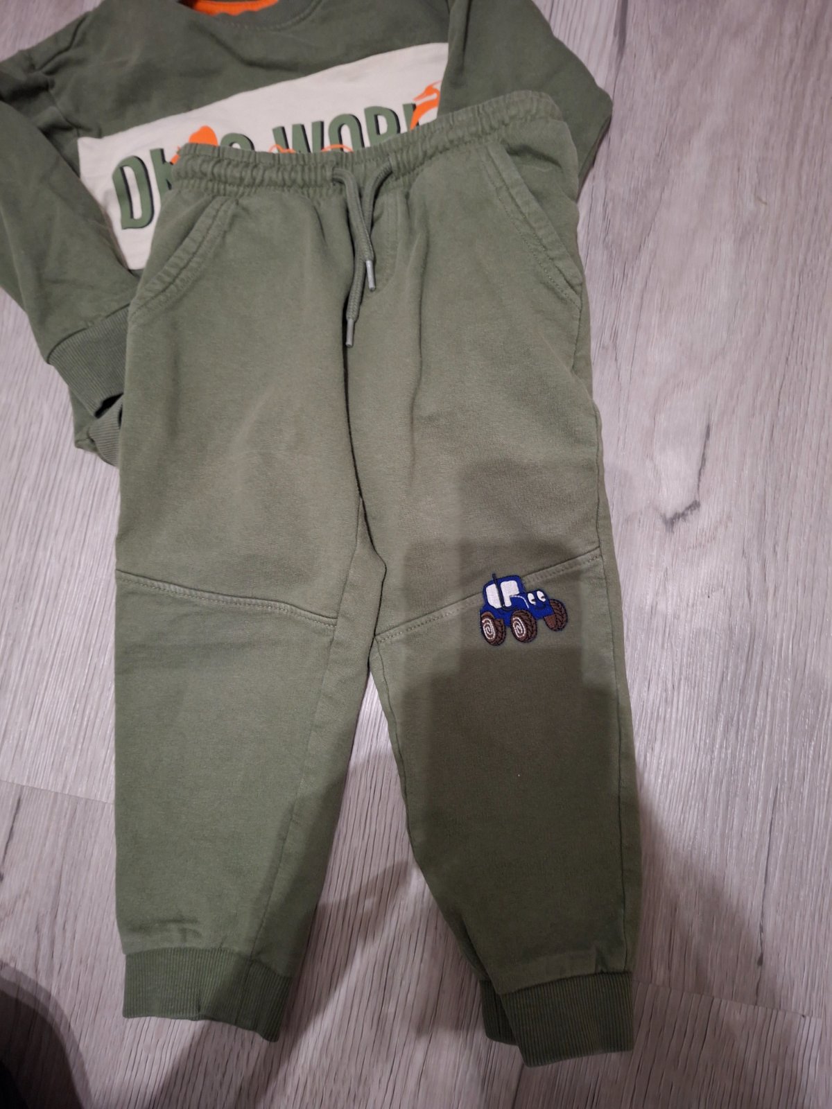 V dobrom stave. Mikina je v top stave a teplaky mali roztrhnute koleno a je tam nasivka traktora. Inak su v poriadku.