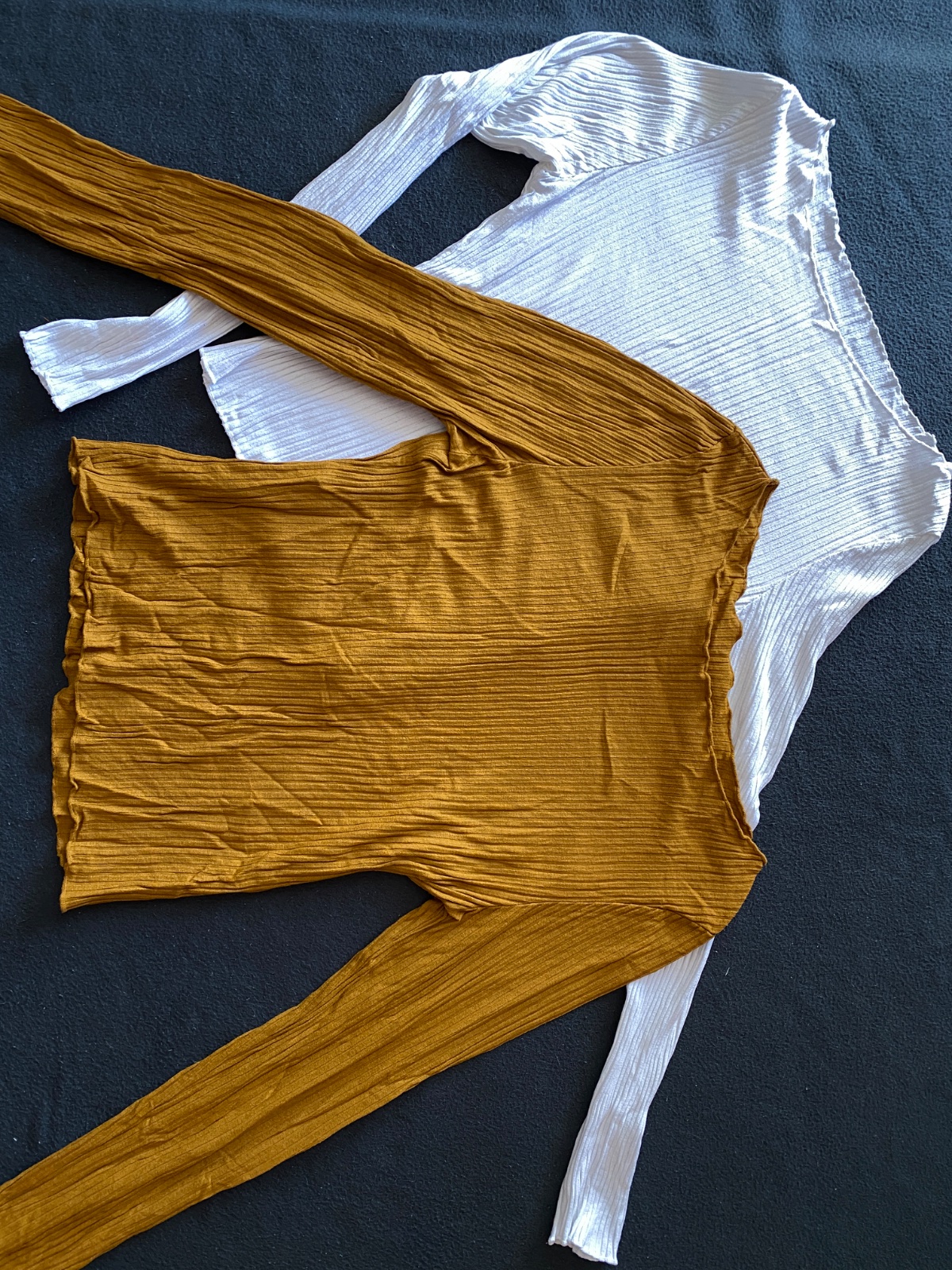 - 229 - tričko bez ruk.s čiernou čipkou. Veľkosť 10/M/36-38 Broskyňová farba, nenosené, preprané - 3550 nohavice voľného strihu, velkost xl, v páse guma, ľahký materiál, nosené predané - Žlté, no...