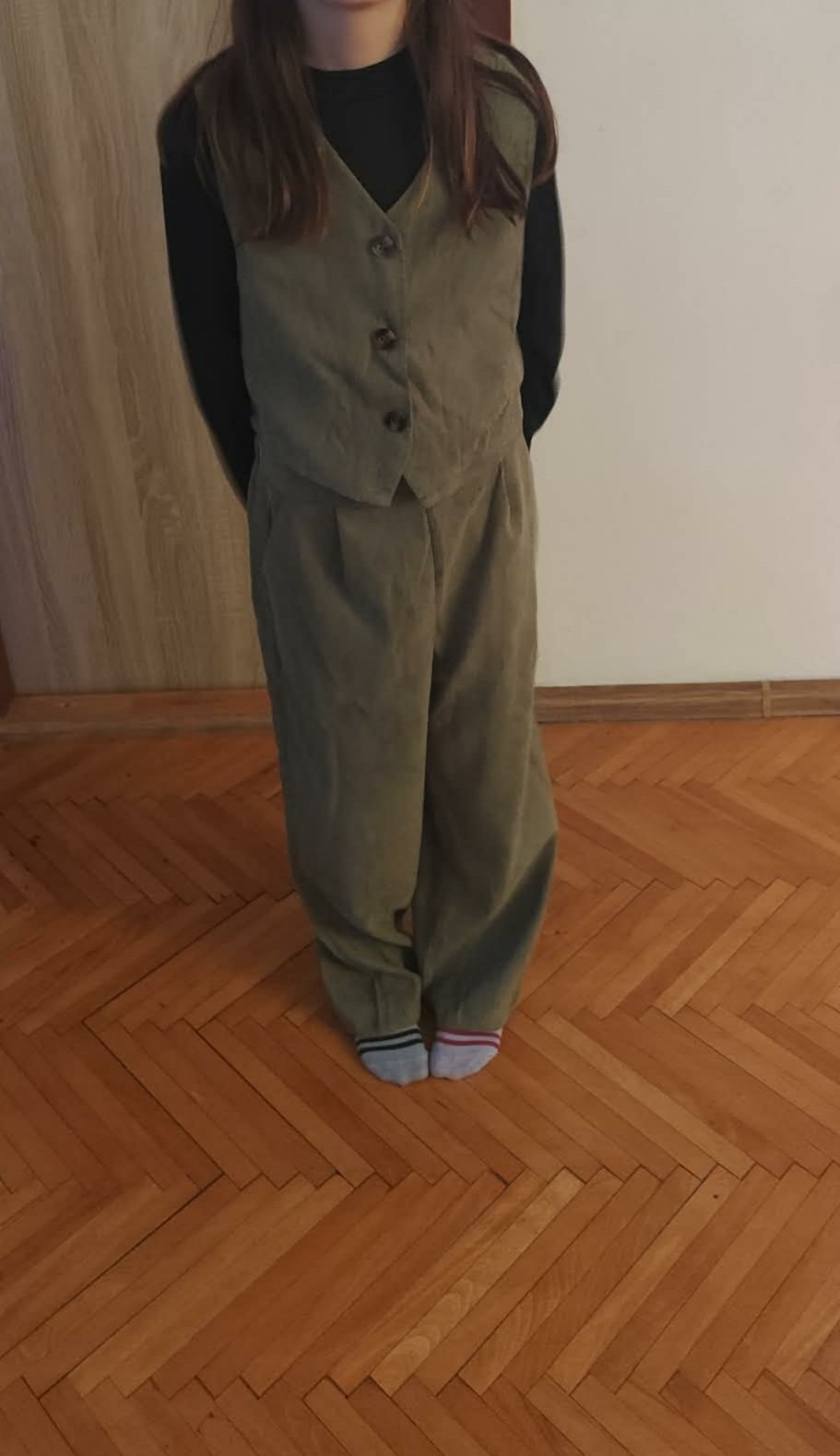 Raz vyuzity komplet na oslave,vesta,tričko ,a nohavice ,tie maju v pase gumu dorobenu na gombik takze pás sa da prispôsobit