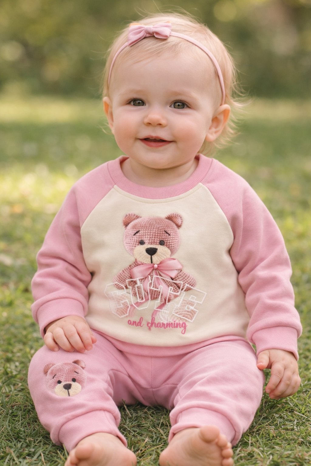 Tento oteplený bábätkovský teplákový komplet s medvedíkom je ideálnou voľbou pre najmenších. Set pozostáva z mikiny s dlhým rukávom a pohodlných tepláčikov, ktoré spolu vytvárajú praktický a rozkošný outfit na každý deň.