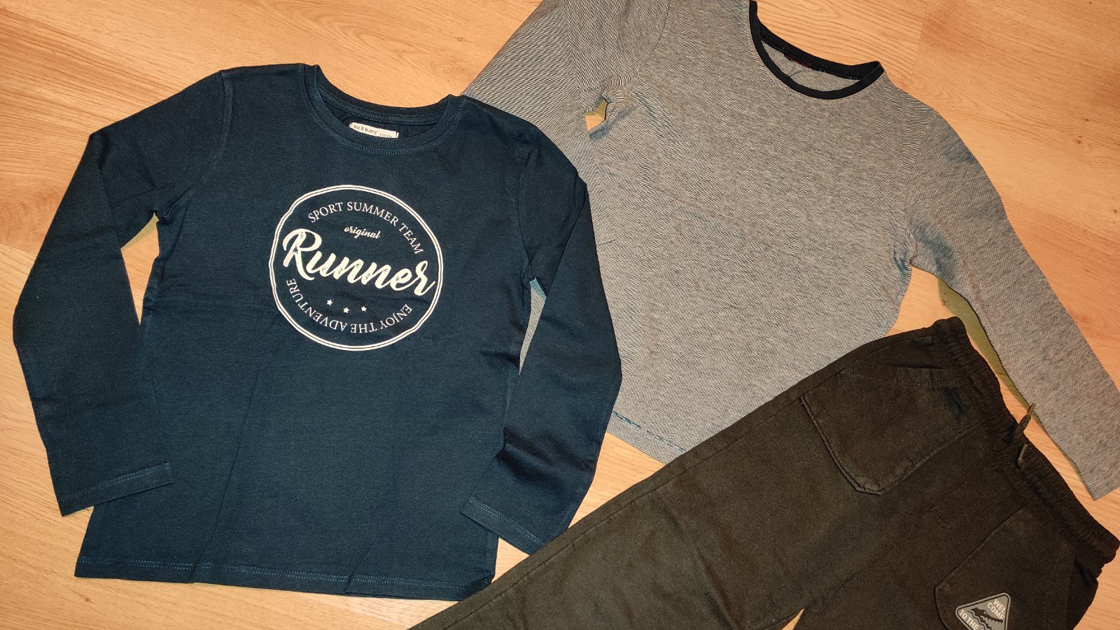 Ponúkam na predaj pekne bavlnené veci. Nosené ale nevyblednute, teplacky neosuchane, bez zmolkov. Vecičky skôr tak na doma, na ihrisko, neznackove zo sinsay. Cena 6 eur.