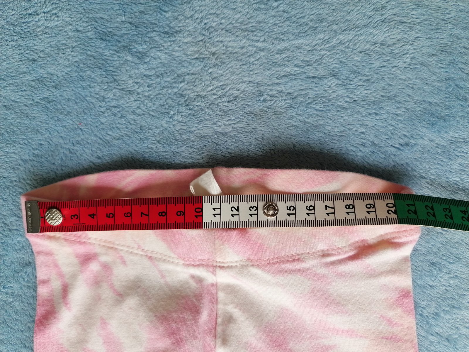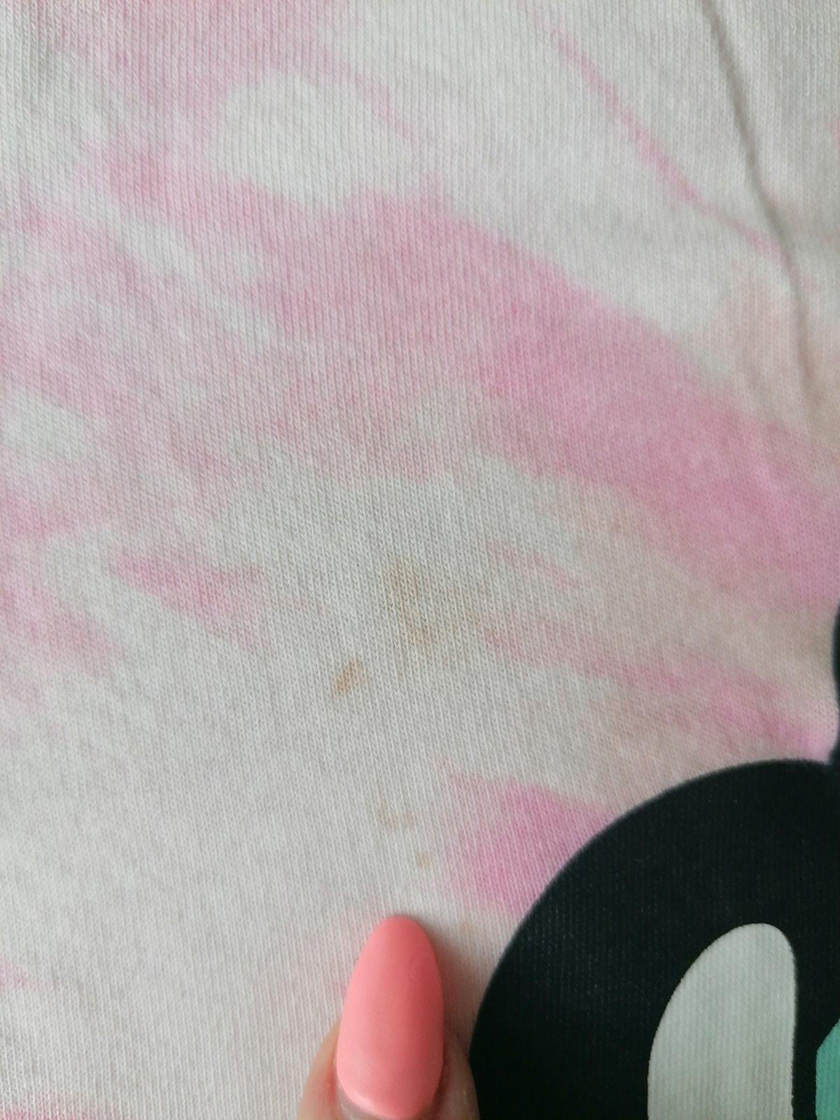 Oblečená par x, no aj napriek tomu som nasla fliacik na tričku (stráca sa vo vzore) a trosku puknuty obrázok na leginkach, vid foto