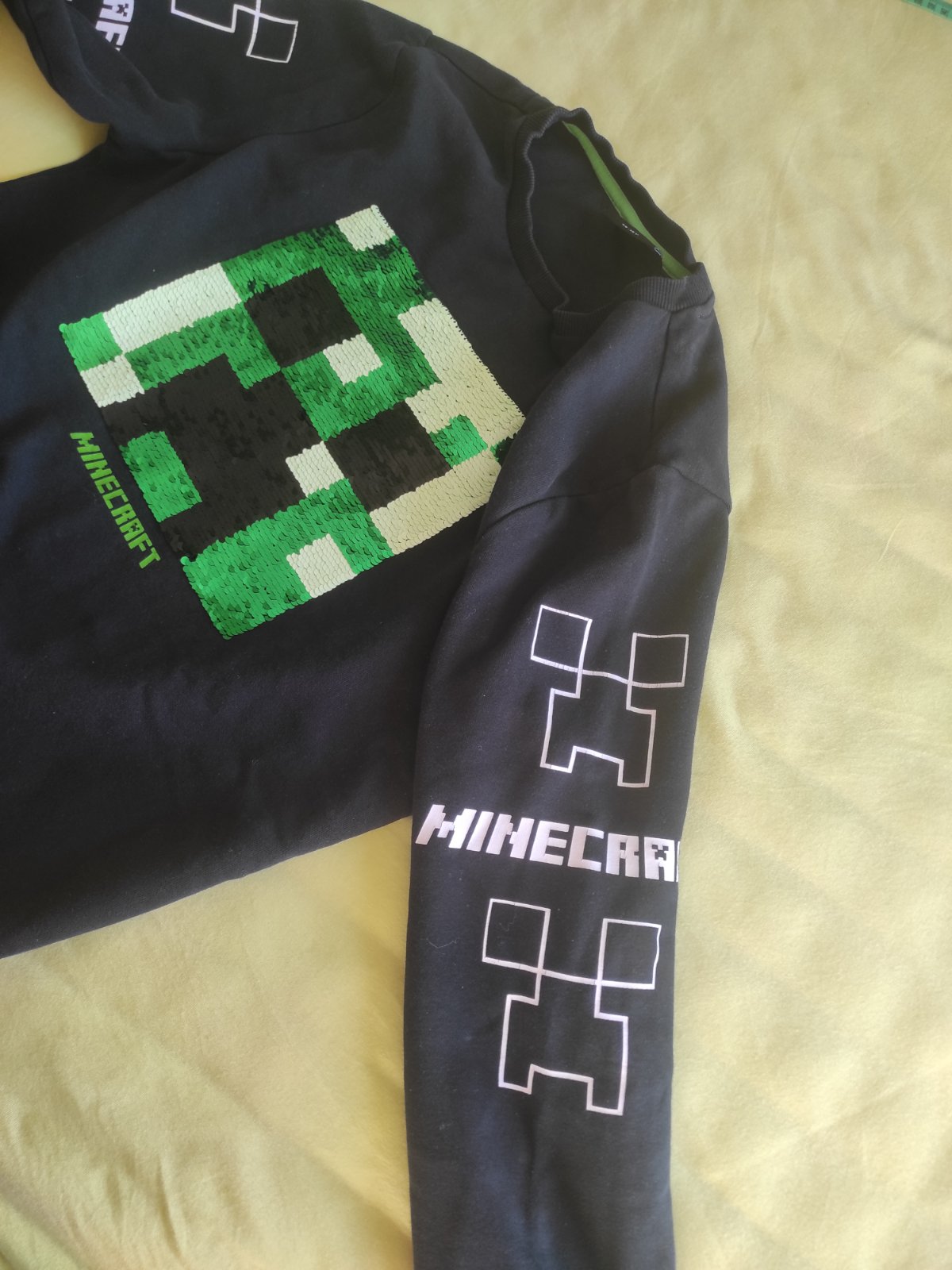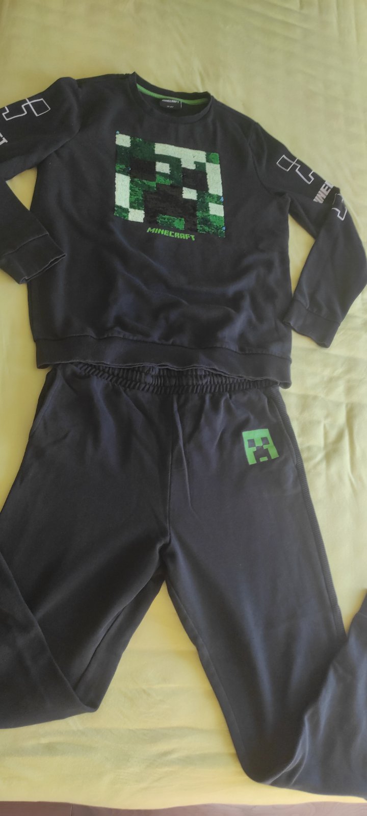 Predám túto krásnu súpravu Minecraft, vo výbornom stave. Píše že na 14-15 rokov a 170cm ale radšej udám miery: Dĺžka mikiny 66cm, šírka pod pazuchami 52cm, dĺžka rukáva od zošitia na pleci 63.5cm. Tepláky dĺžka 97.5cm, pás 37x2.
