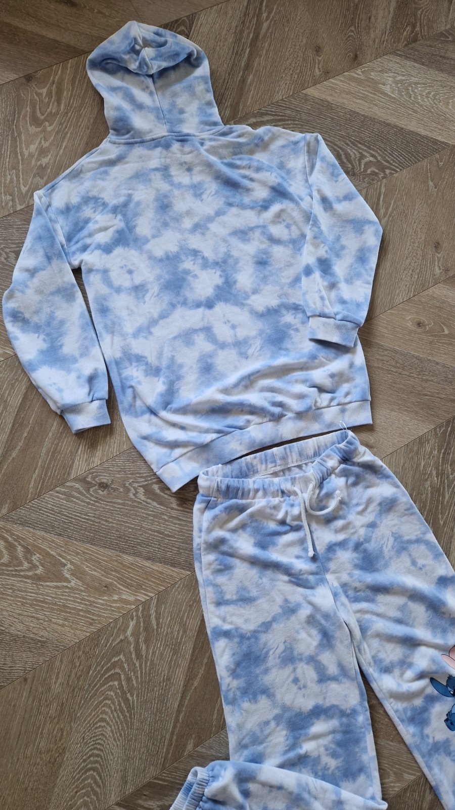 Super stav, ako nové, málo nosené, tenšia teplákovina,,nie tá hrubá, čo sa žmolká. Dĺžka nôh od pása 98, vnútorná dĺžka od rozkroku 75, pás 35x2 na gumu aj na šnúrku. Mikina dĺžka chrbta 72, šírka pazuchy 54x2, dĺžka rukáva od krku 70cm. K cene plus poštovné podľa taríf SP.