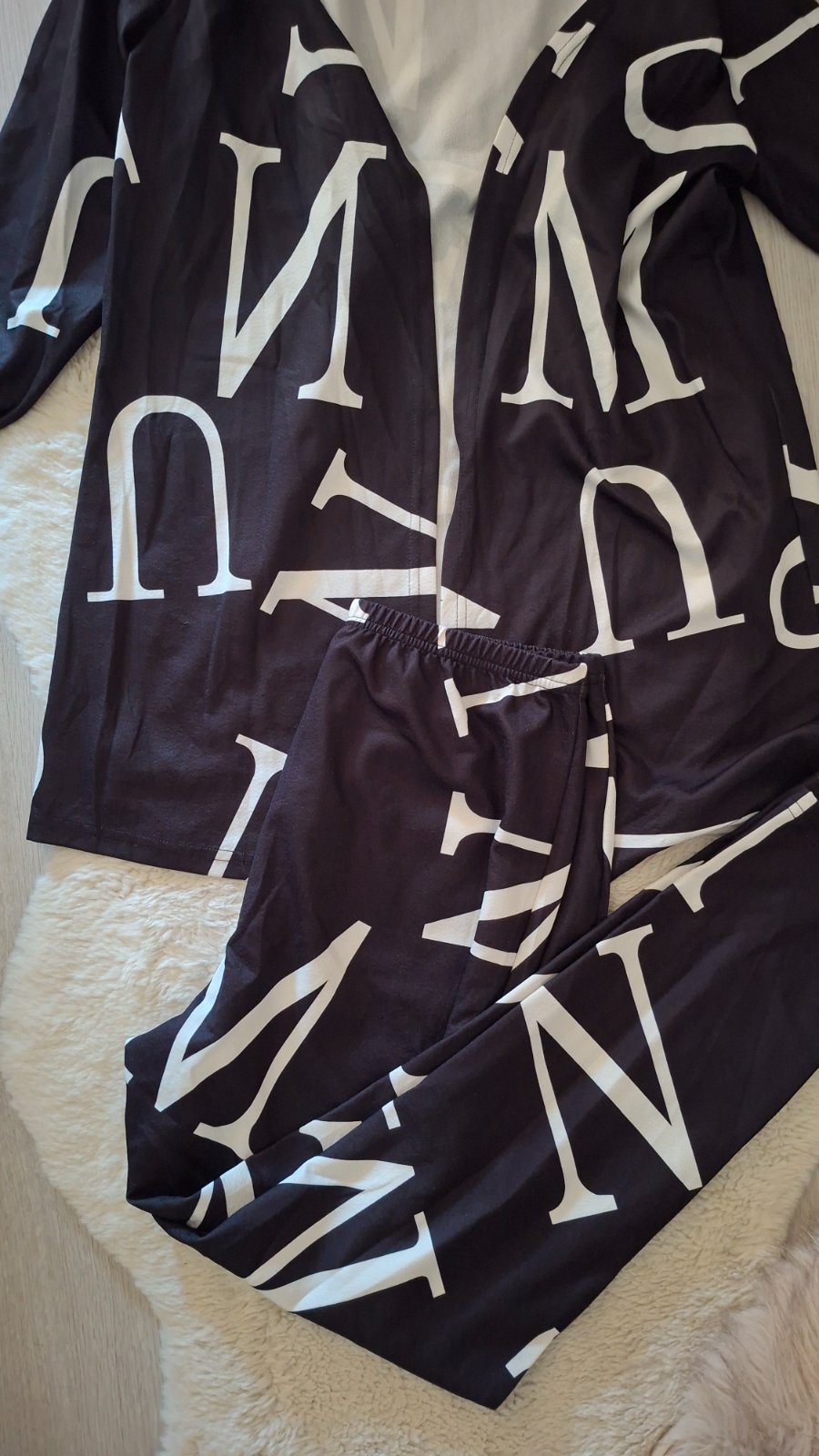 tunika + nohavice, UNI velkosť, pasuje od 38-44, tunika presný diel kombinovaný s čiernou, zadný diel čierno biely celý, tvar do písmena A, nohavice v pase na gumu, 1x oblečené. tunika sa da nosiť...