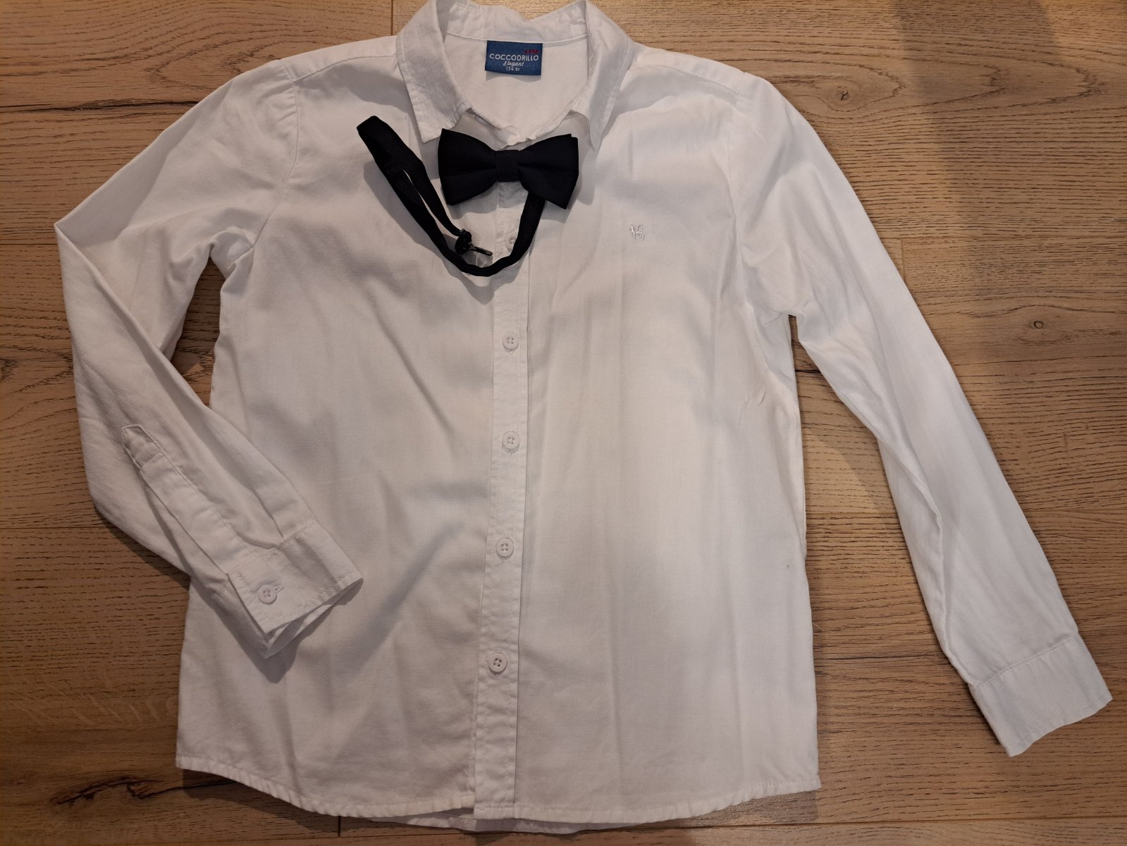 Predám chlapčenský oblek zn. Coccodrillo (sako 140 cm, nohavice 140 cm, košeľa 134 cm, motýlik). Oblečené 1 krát na 1. sv. prijímaní.