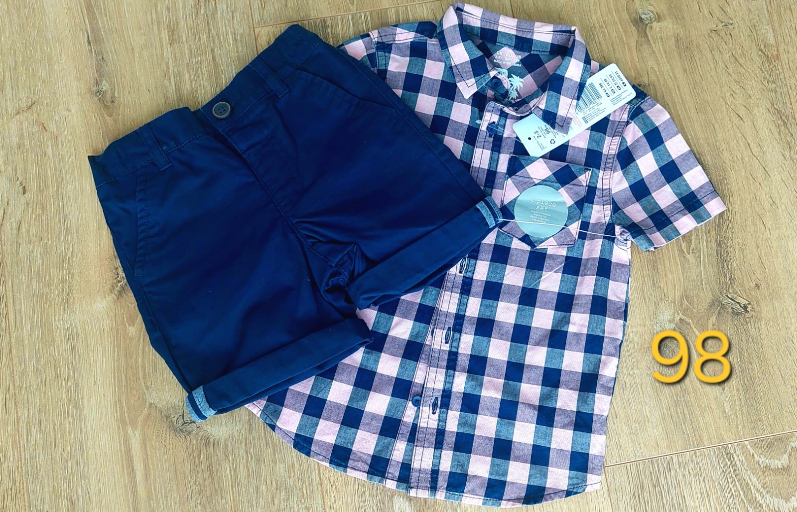 Nový set bermudy a károvaná košeľa tmavomodrá s ružovou.