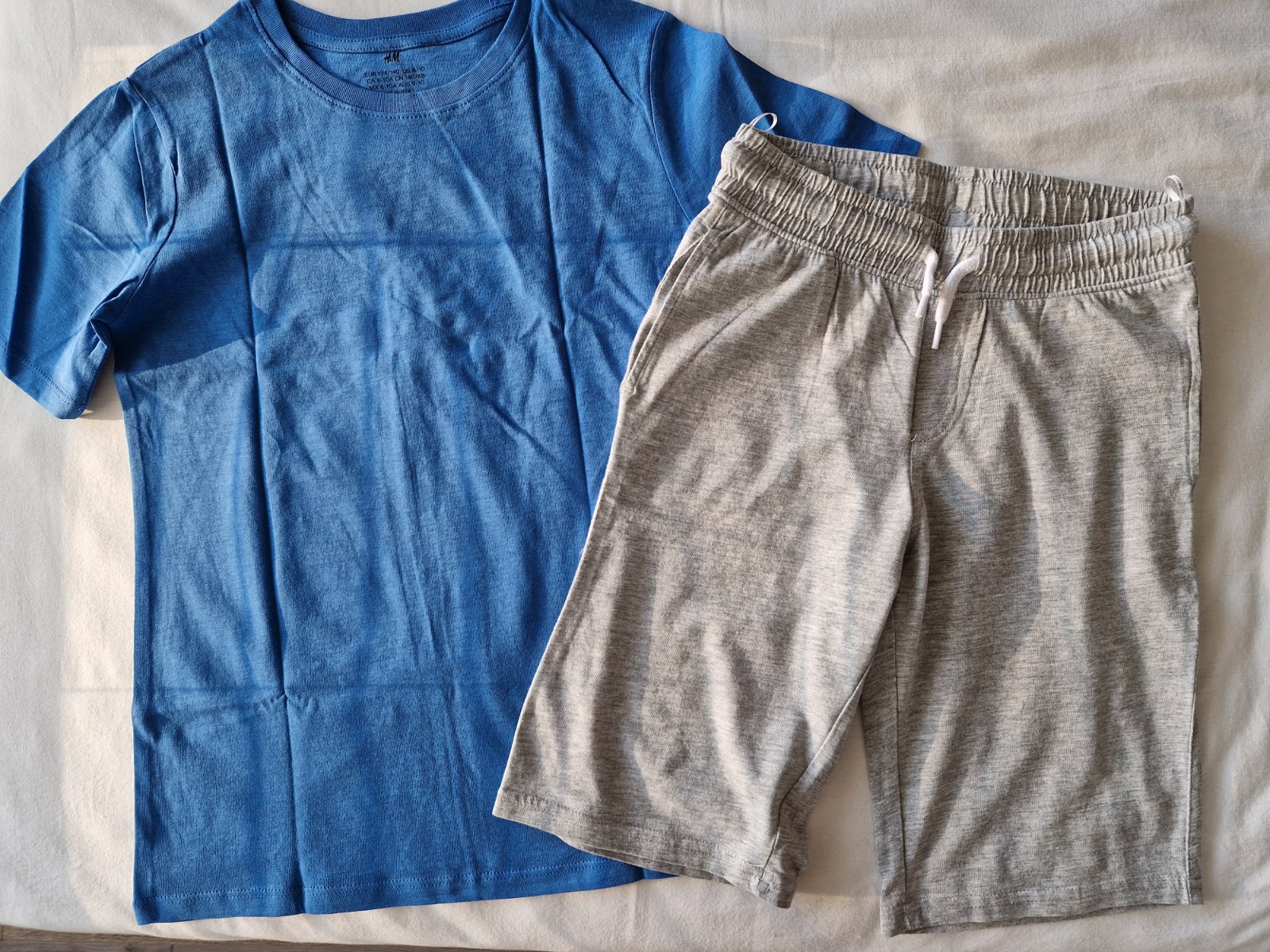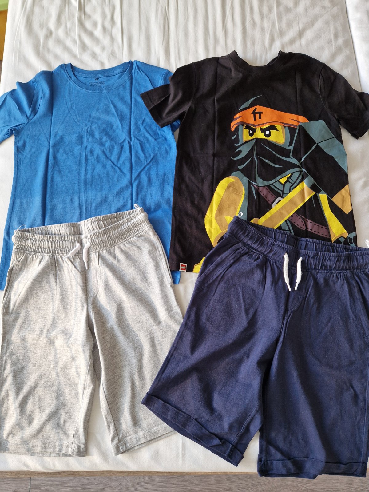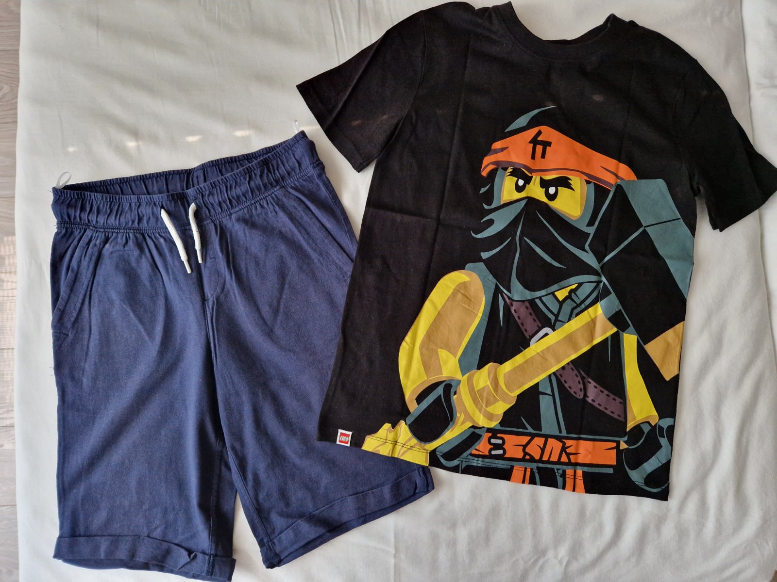 - tmavomodre kratase s kapsami a ninja go tricko = 8.5e