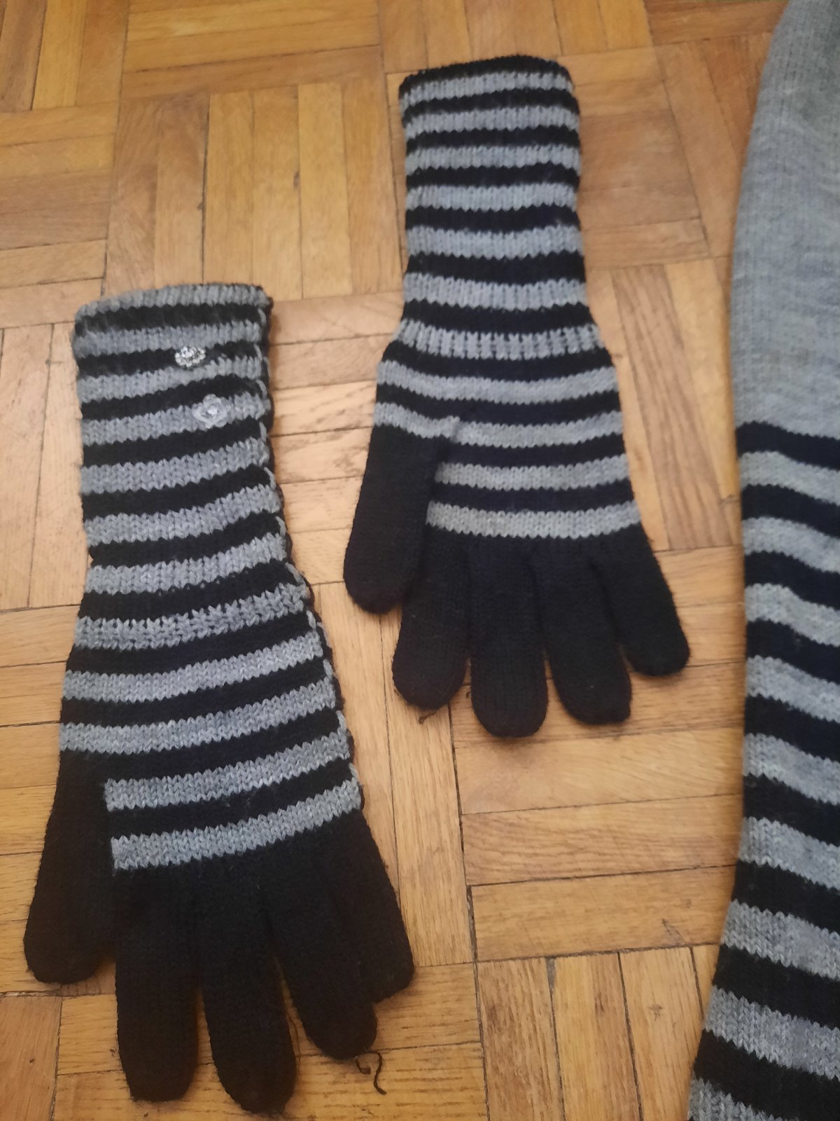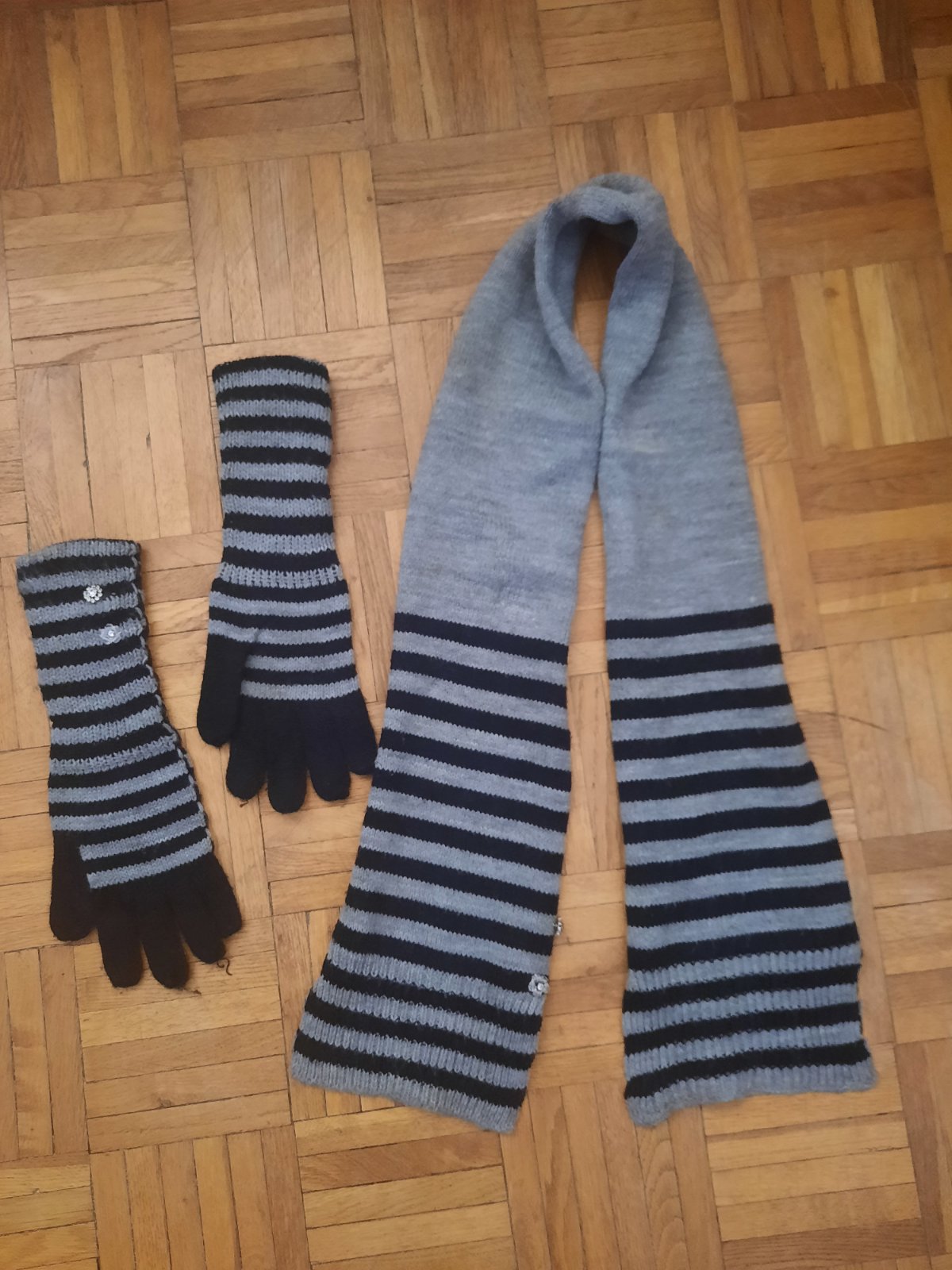 Veľmi pekný dievčenský set-rukavice so šálom. Rukavice sú dlhšie, majú ozdobné gombíky.