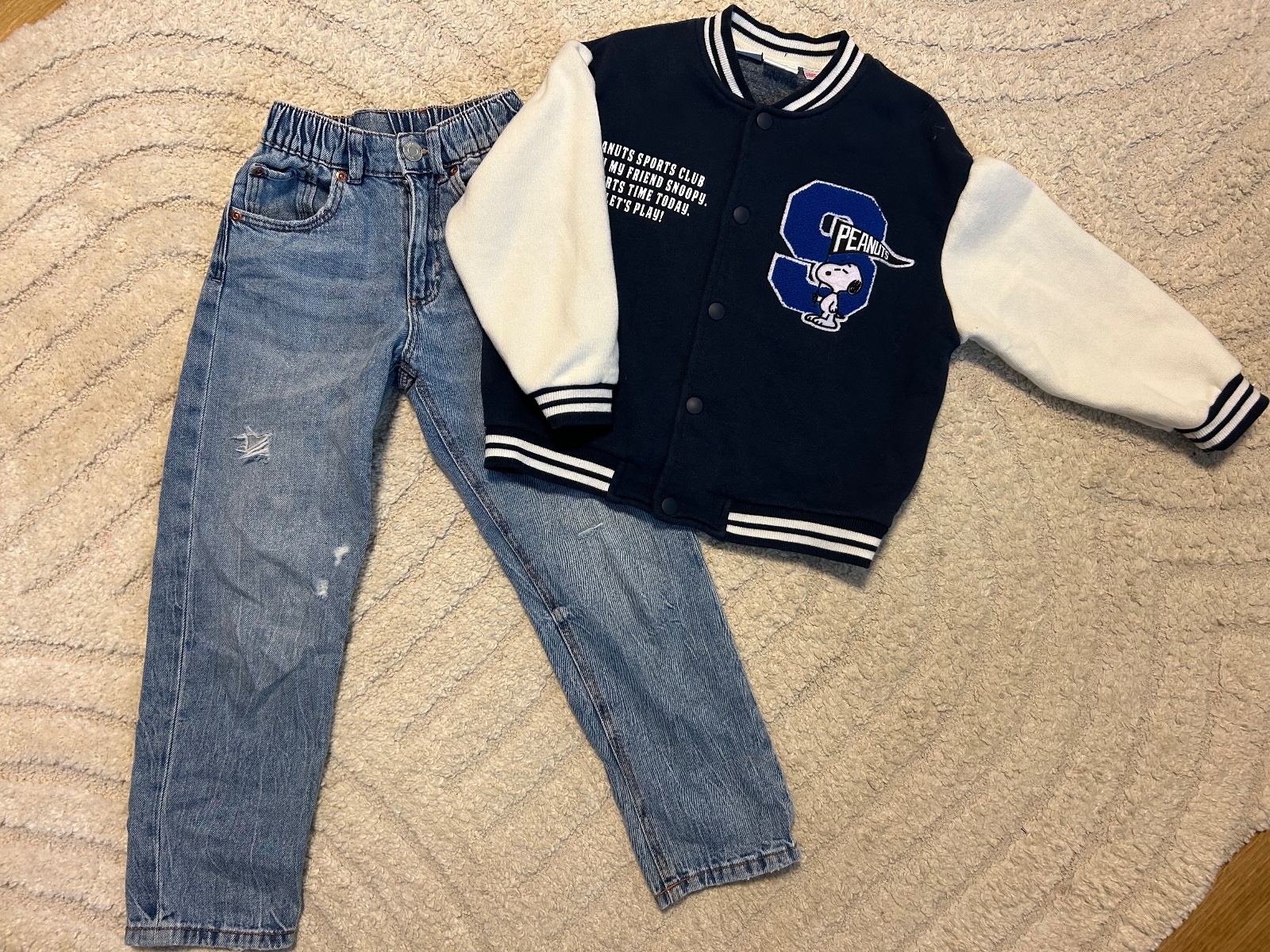 Rifle zo zary jemne pudlovy sed, regulacia v pase je funcna. Rifle su skor tensieho materialu Posuvam spolu ako komplet do skoly. Miery na foto.