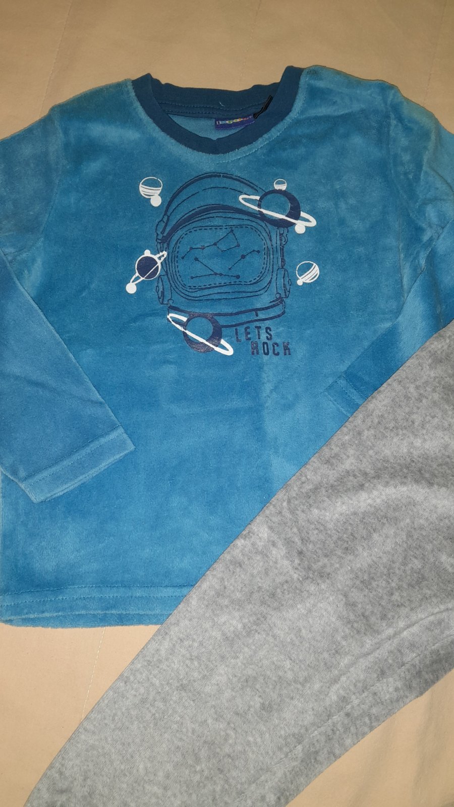 Farba teplakov siva, tricko-pulovrik petrolejova.