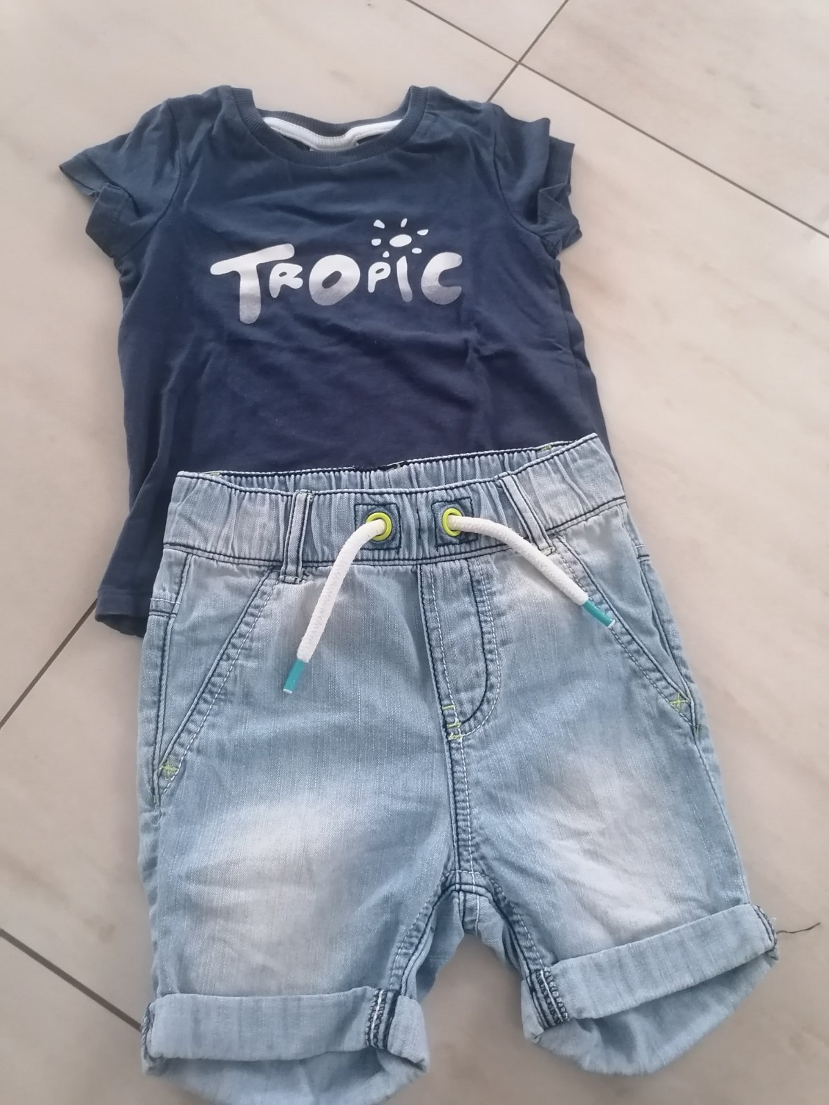Tričko a riflové kratase. Bez poškodenia