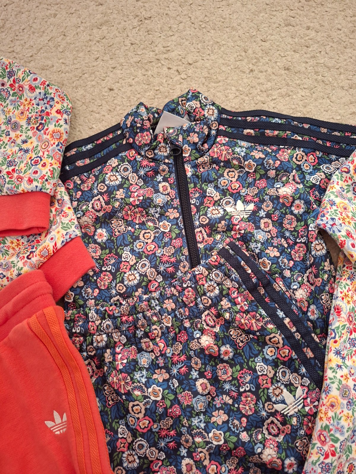 Ponukam na predaj pekne oblecenie pre male dievcatko. Krasne teplacky adidas, nosene ale neznicene, nevyblednute, bez zmolkov, k nim dvoje bodynka, pruhovane C&A, telejsie, velmi prijemna hrubsia b...