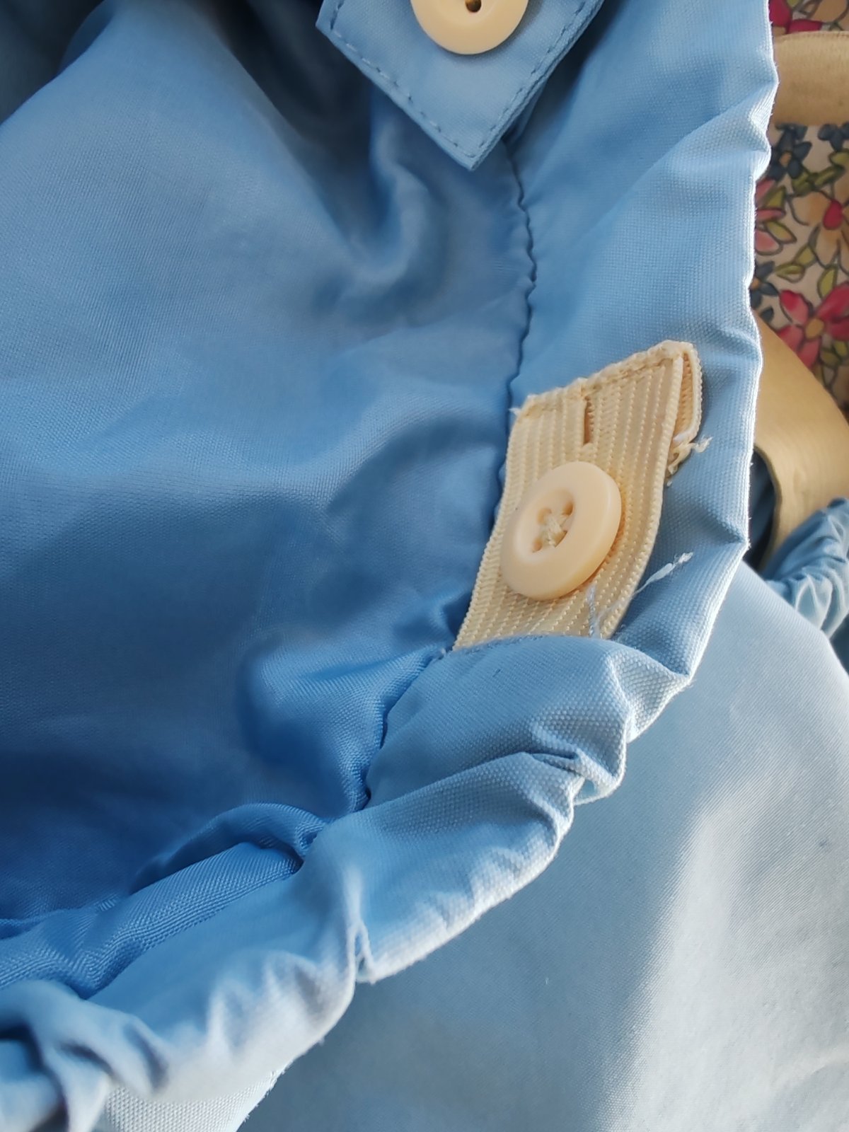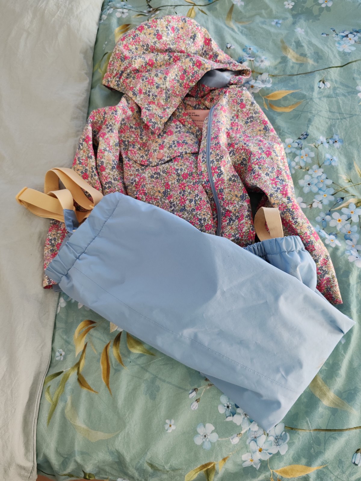 Bez poskodeni, super stav, odnimatelna kapucna, s gumou na nohaviciach, nastavitelny pas, nastav traky