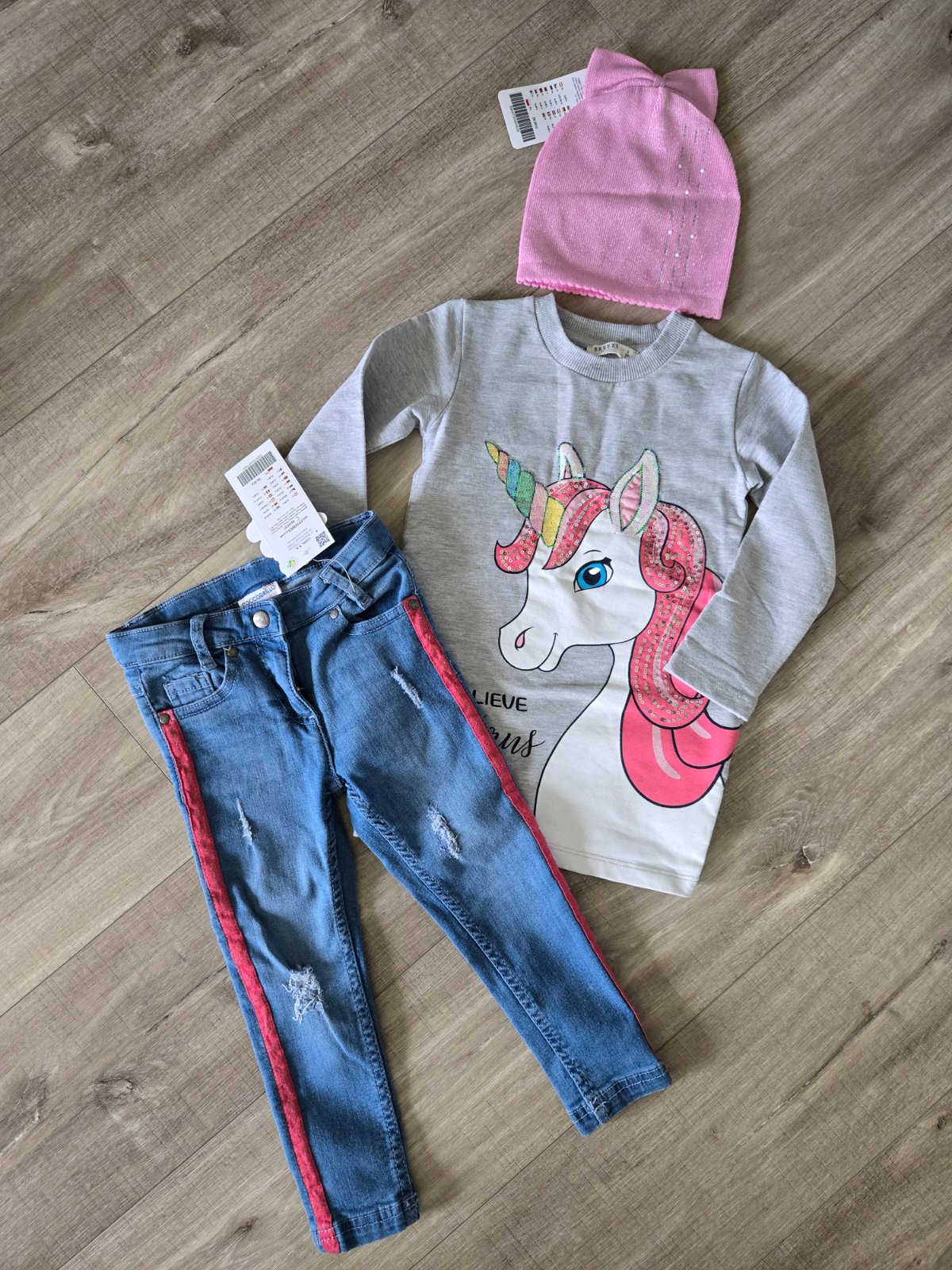 Nové rifle, čiapka Coccodrillo a nosené mikino šaty v top stave
