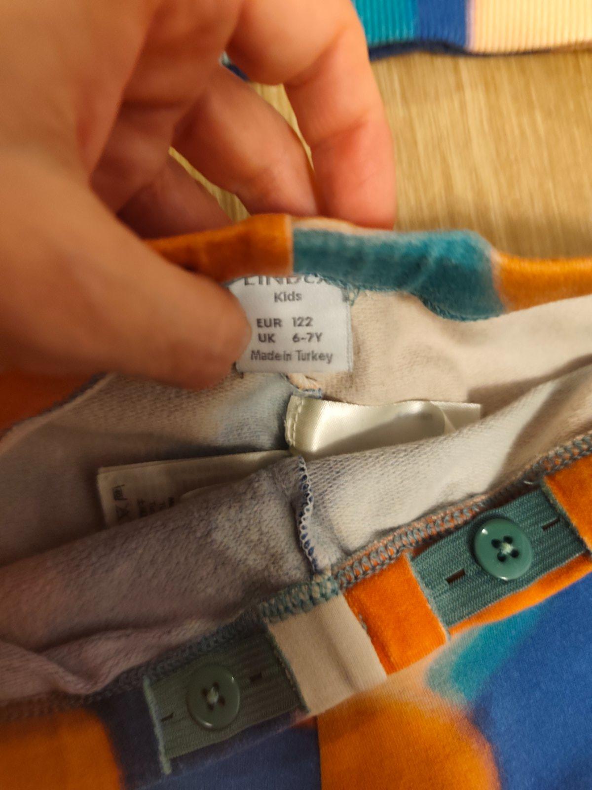 Legíny zvnútra počesané , pás nastaviteľný, celková dĺžka 62 CM, písané 122 ale podľa mňa menšie, nám sedeli s mikinou vek. 116.