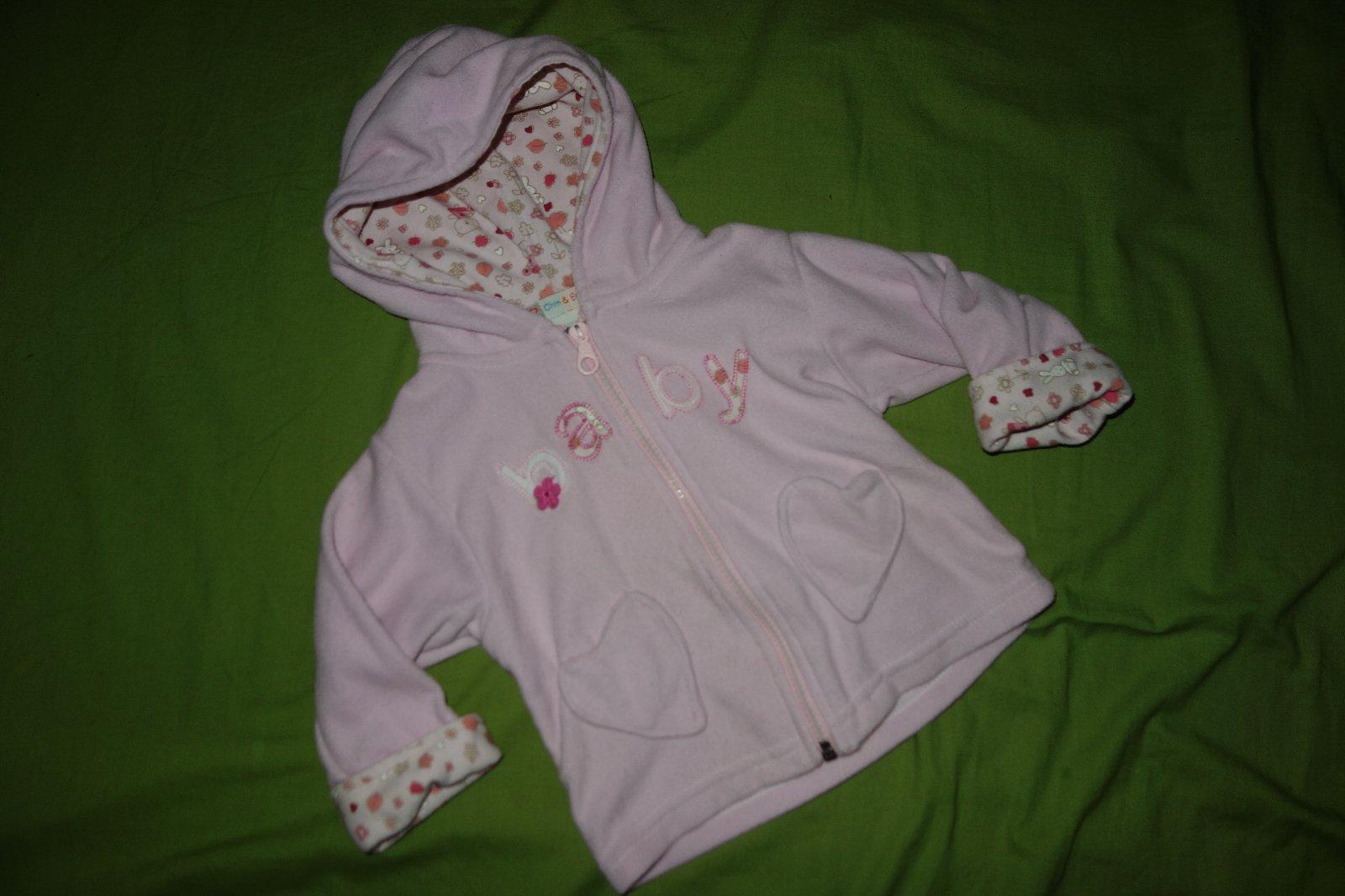 Ruzova flisova supravicka vo velmi dobrom nosenom stave. Rozmery:bundicka: dlzka rukavu od krku: 29cm, od pleca: 23cm, celkova dlzka bundicky: 31cm, sirka pod pazuskami:31cm ; nohavice: celkova dlzka: 40cm, dlzka od rozkroku: 21cm, sirka v pase: 18cm
