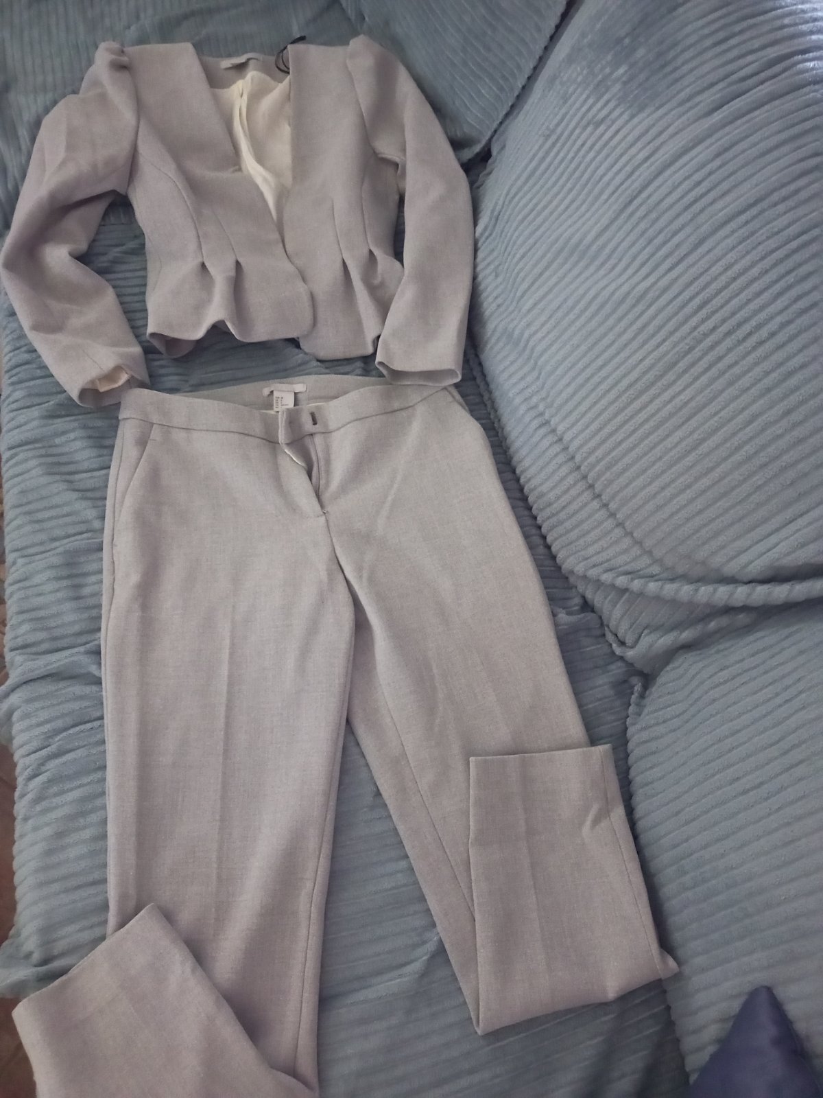 Krásny kostymcek,oblečený 3x, má 7/8 nohavice. Podšitý,efektný.Mne žiaľ už úzky.