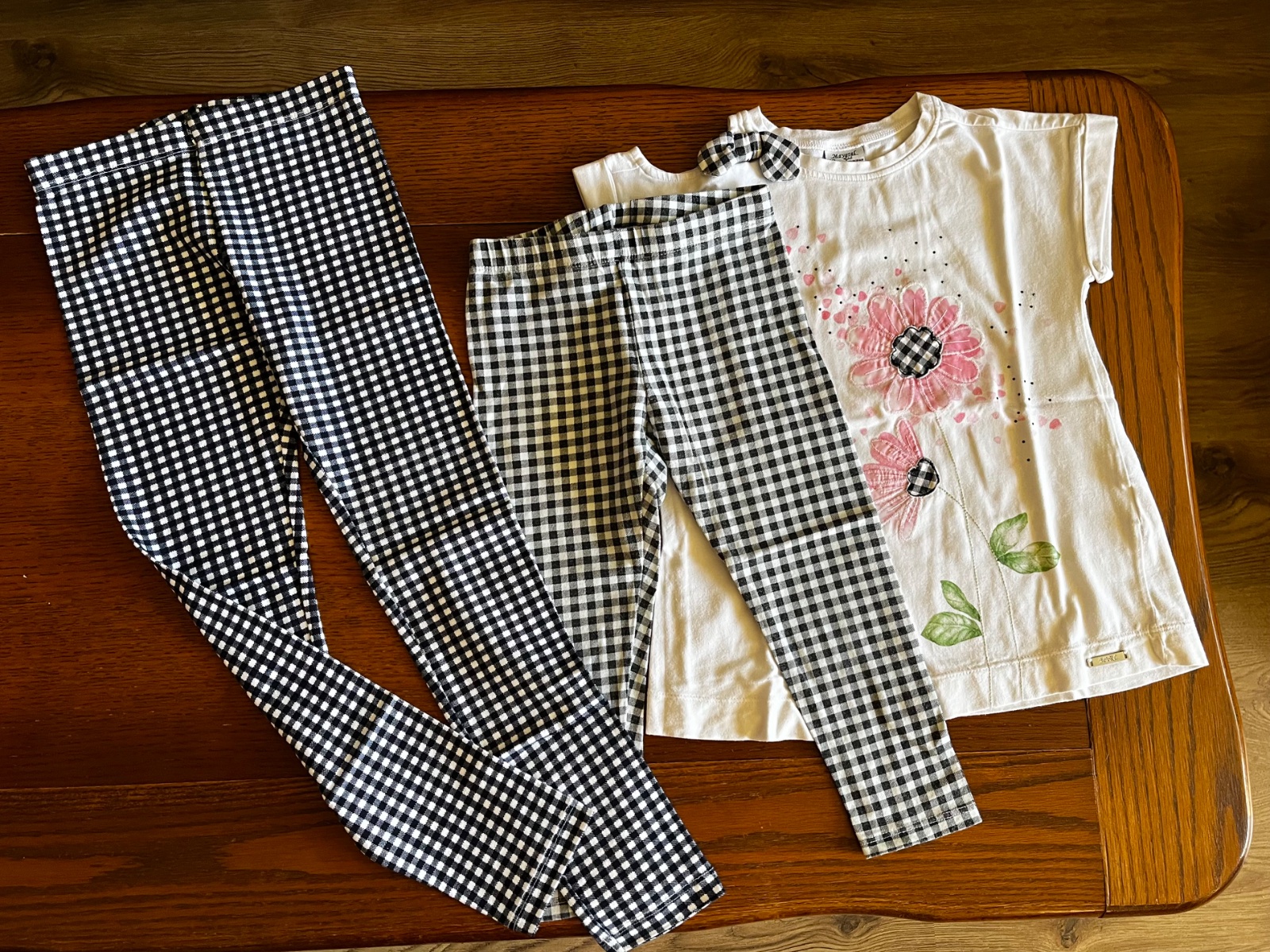 K súprave som dokúpila ešte dlhé legíny s podobným vzorom, ktoré mám v ponuke v ďalšom inzeráte v našom bazáriku.