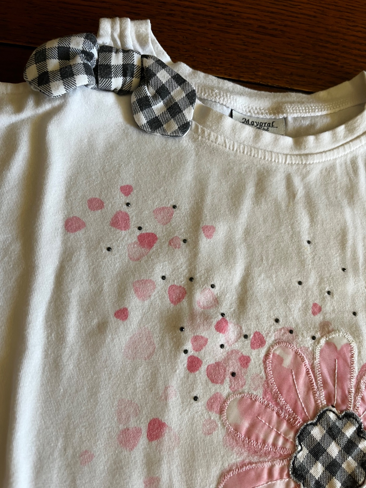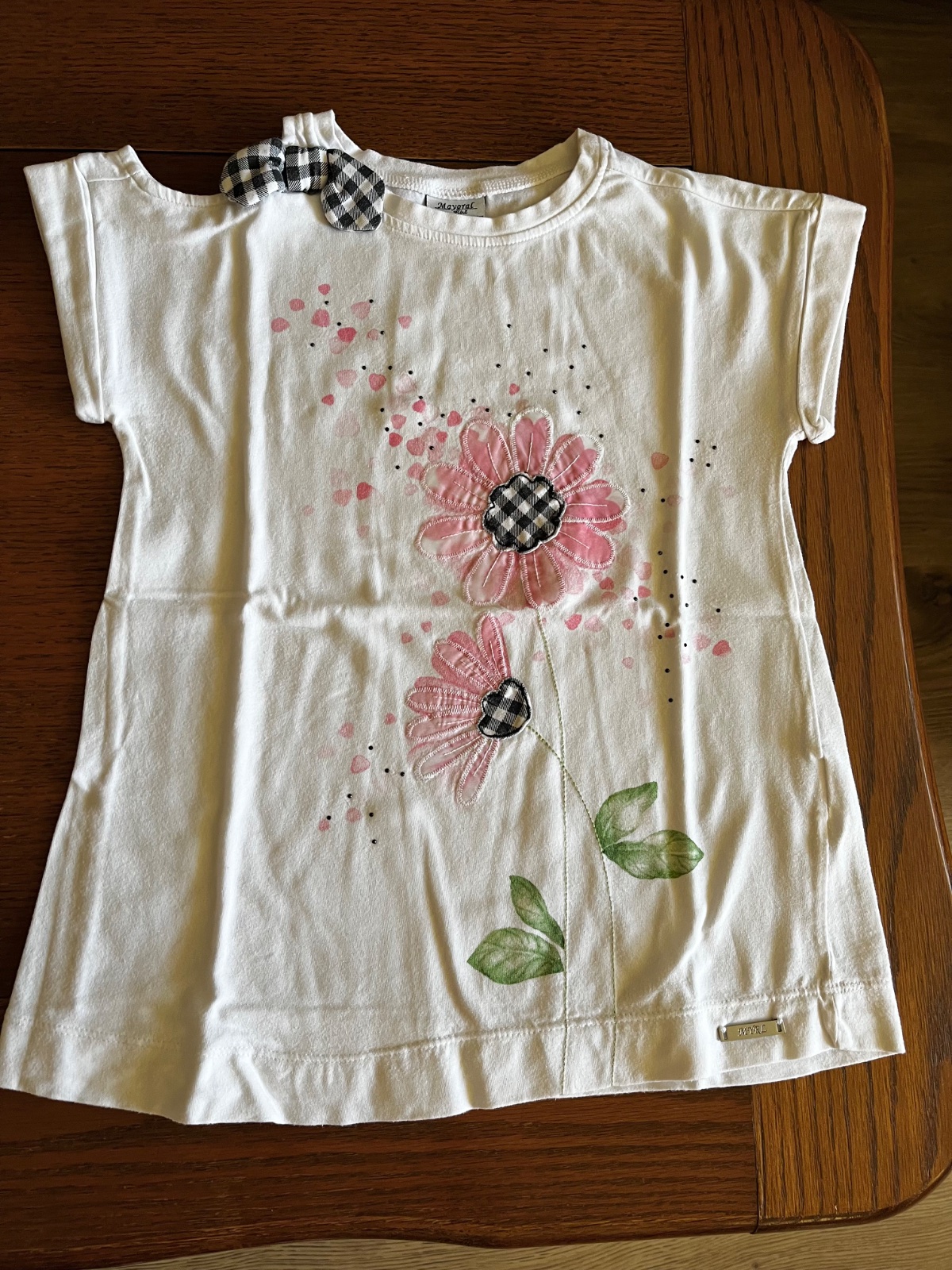 Pekne farebne a kontrastne doladené, na tričku krásne ozdoby, výrez na ľavom ramene - vyzerá to veľmi efektne.