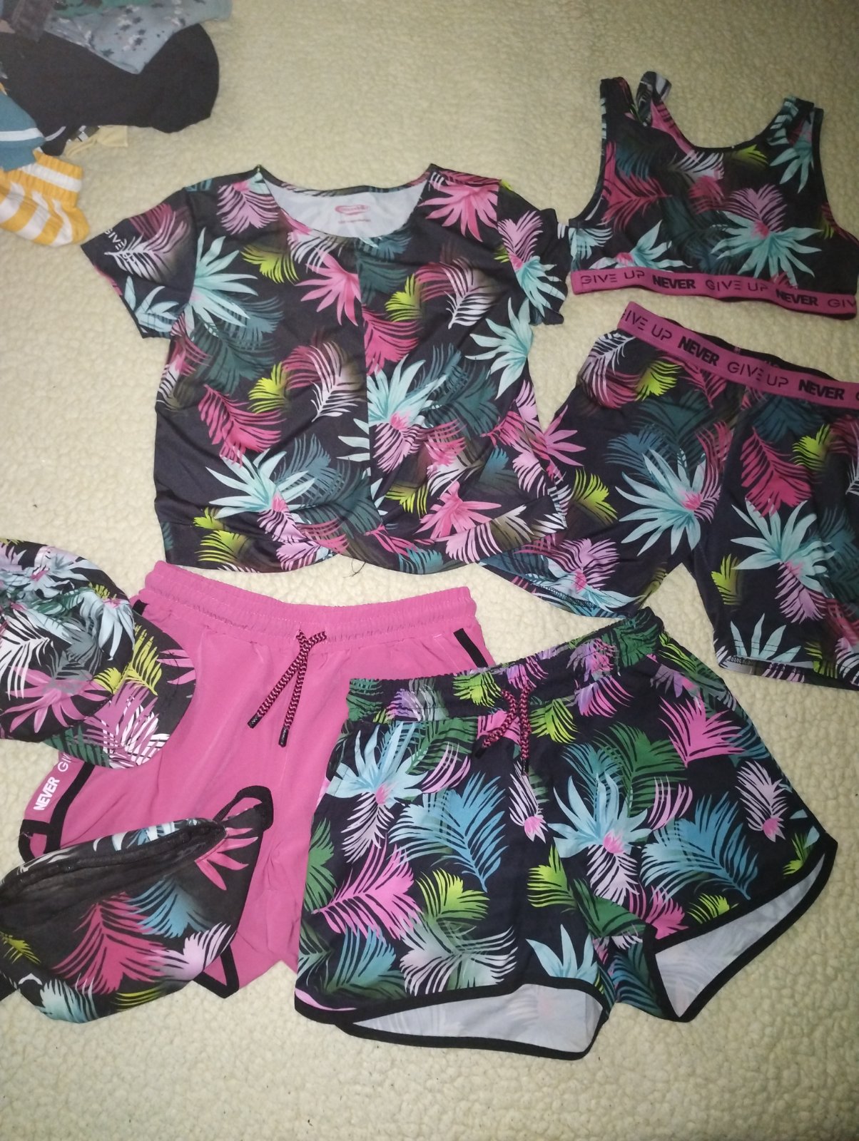 Parádna súprava na leto, v dobrom stave, bez poškodenia, 3 kraťasy, tričko, tielko , ladvinka a šiltovka, cena za komplet