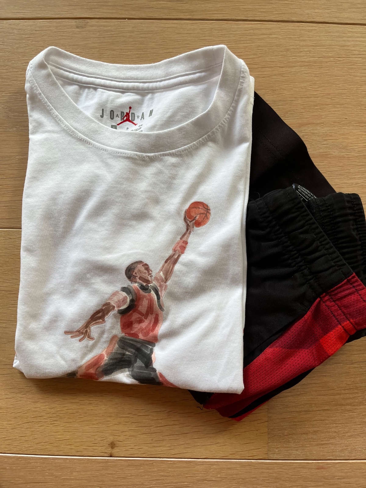 Tričko Jordan velk 128 a kraťasy Nike (116-122).